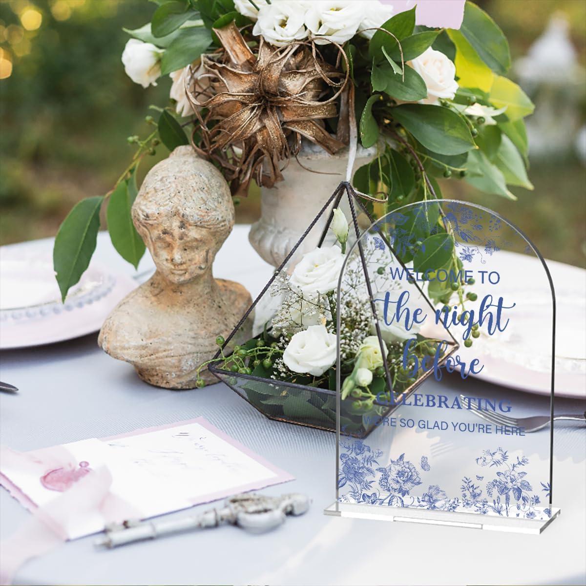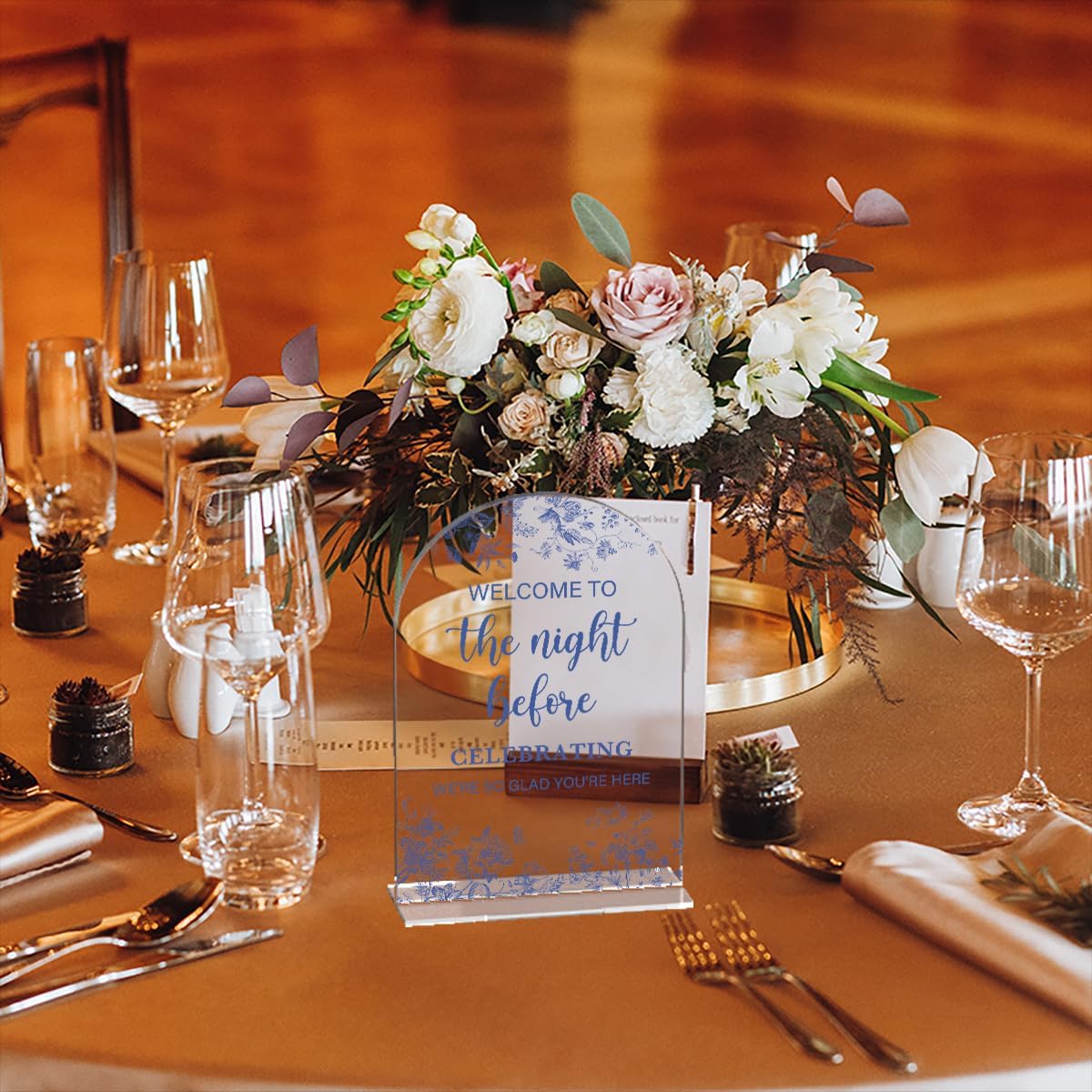 Acrylic Wedding Signs, Dusty Blue Wedding Decor, Blue Weddings Decor, Modern Calligraphy Arch Acrylic Table Top Sign for Weddings Parties Dinners - Welcome to The Night Befor (Clear)