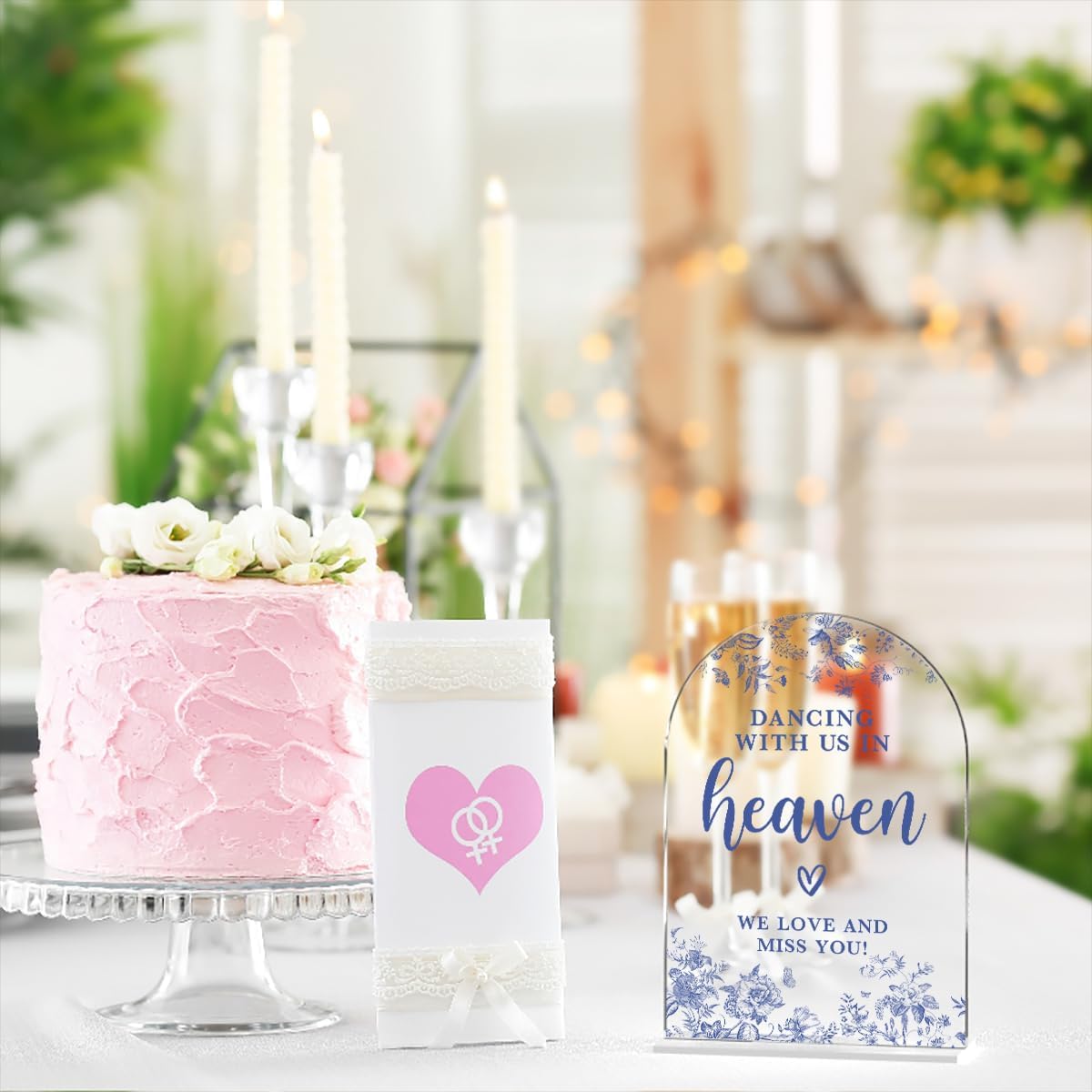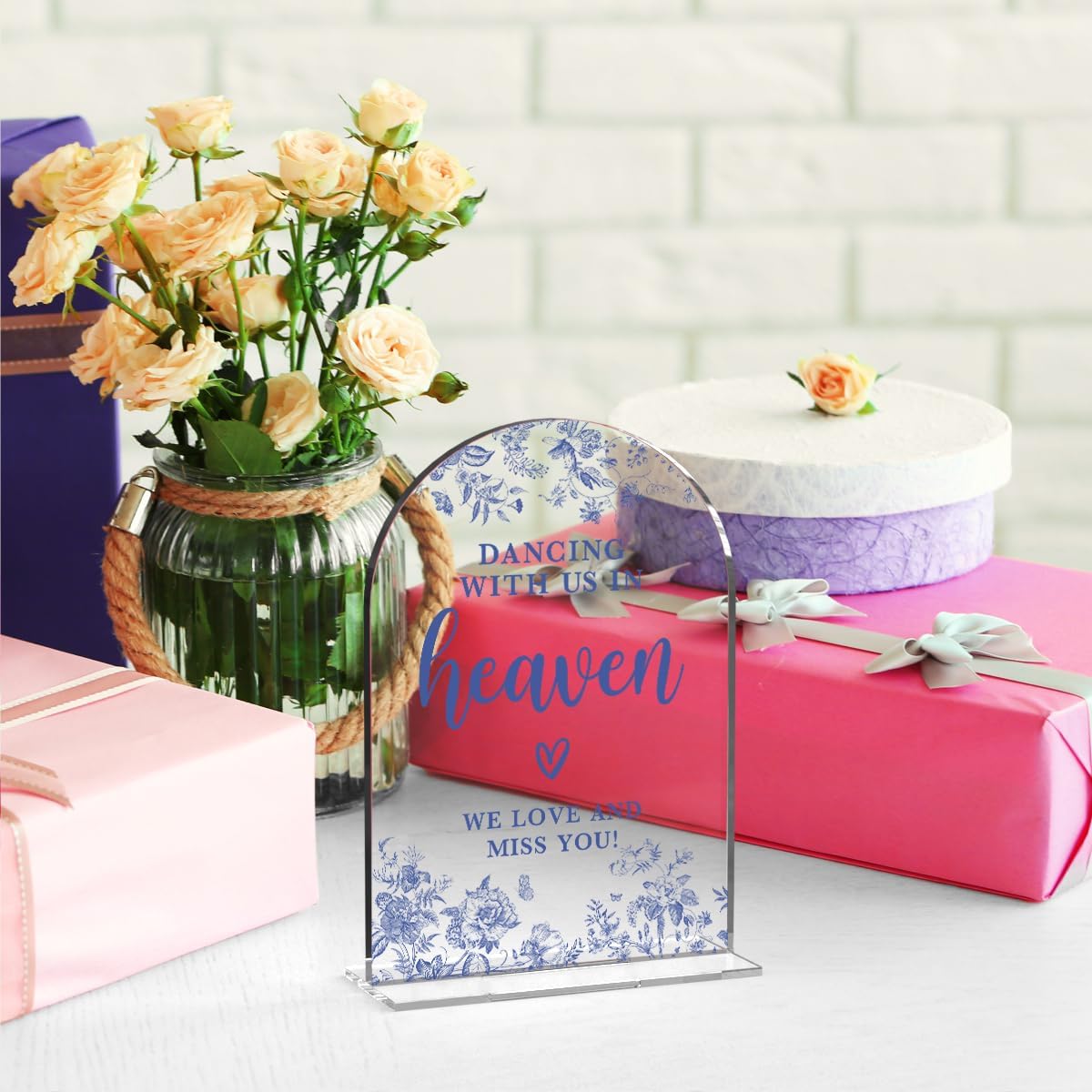 Acrylic Wedding Signs, Dusty Blue Wedding Decor, Blue Weddings Decor, Modern Calligraphy Arch Acrylic Table Top Sign for Weddings Parties Dinners - Dancing With Us in Heaven (Clear)