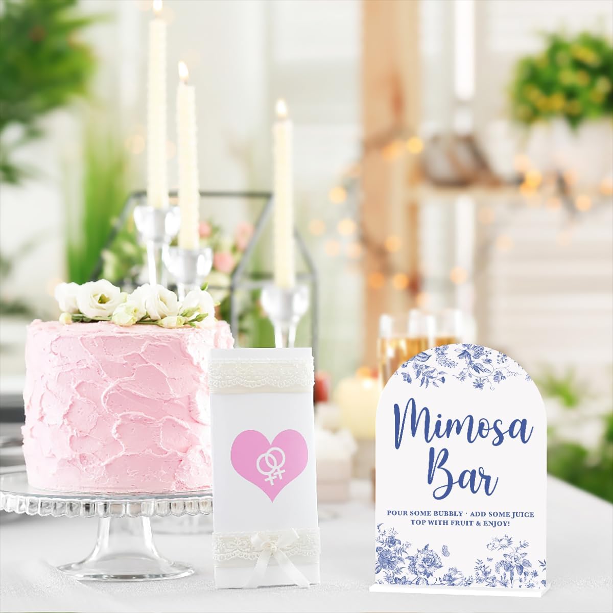 Acrylic Wedding Signs, Dusty Blue Wedding Decor, Blue Weddings Decor, Mimosa Bar Signs for Reception, Modern Calligraphy Arch Acrylic Table Top Sign for Weddings Parties Dinners (White)