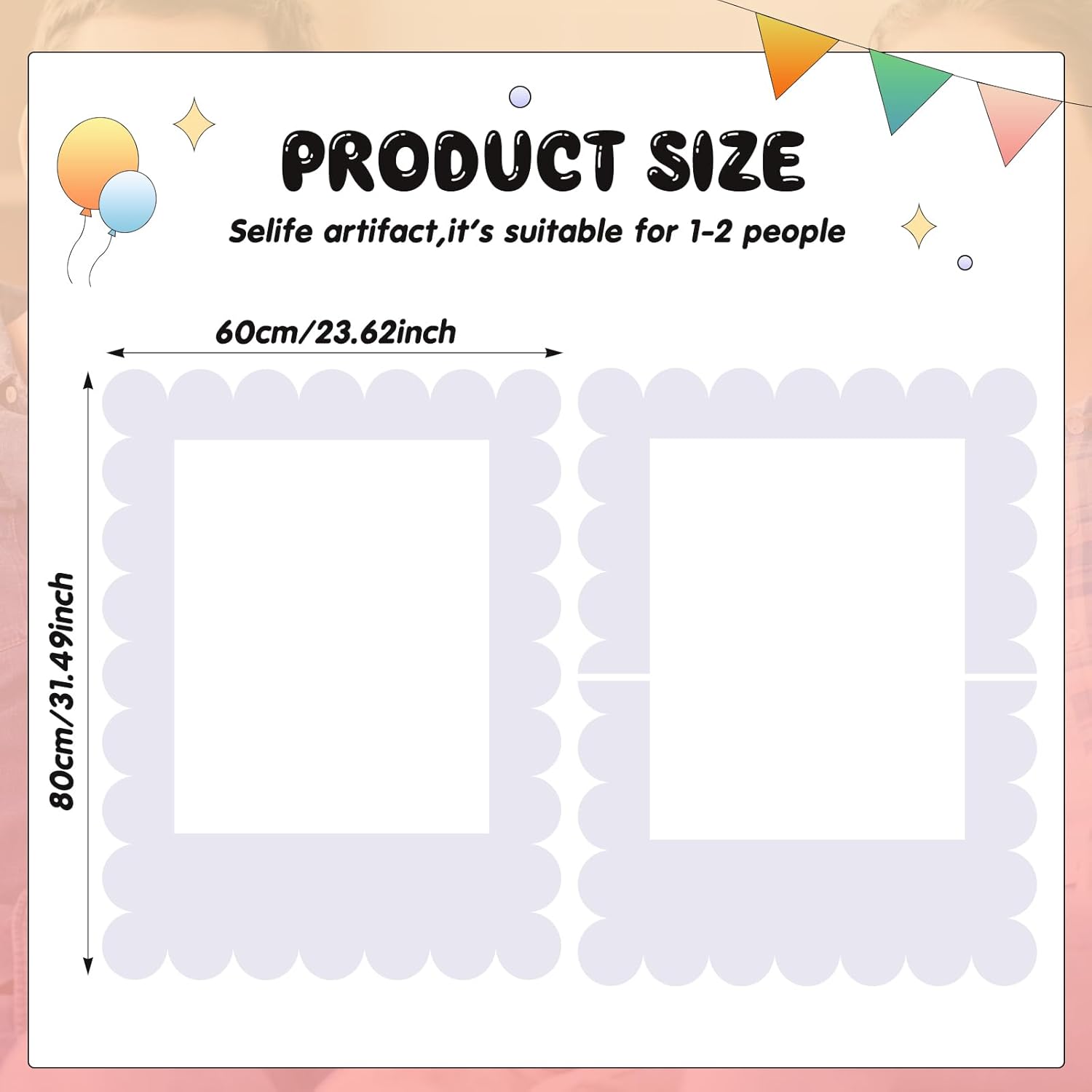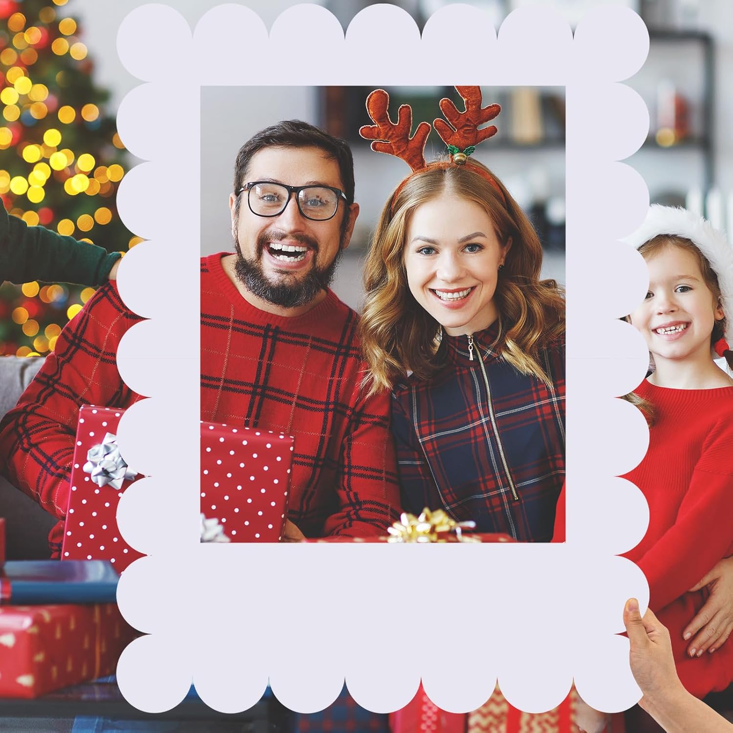 32 x 24 Inch Large Blank DIY Photo Booth Props Picture Frame Party Frame DIY Photo Booth Props Selfie for Birthday, Graduation, Christmas Holiday Party(White,Scalloped)