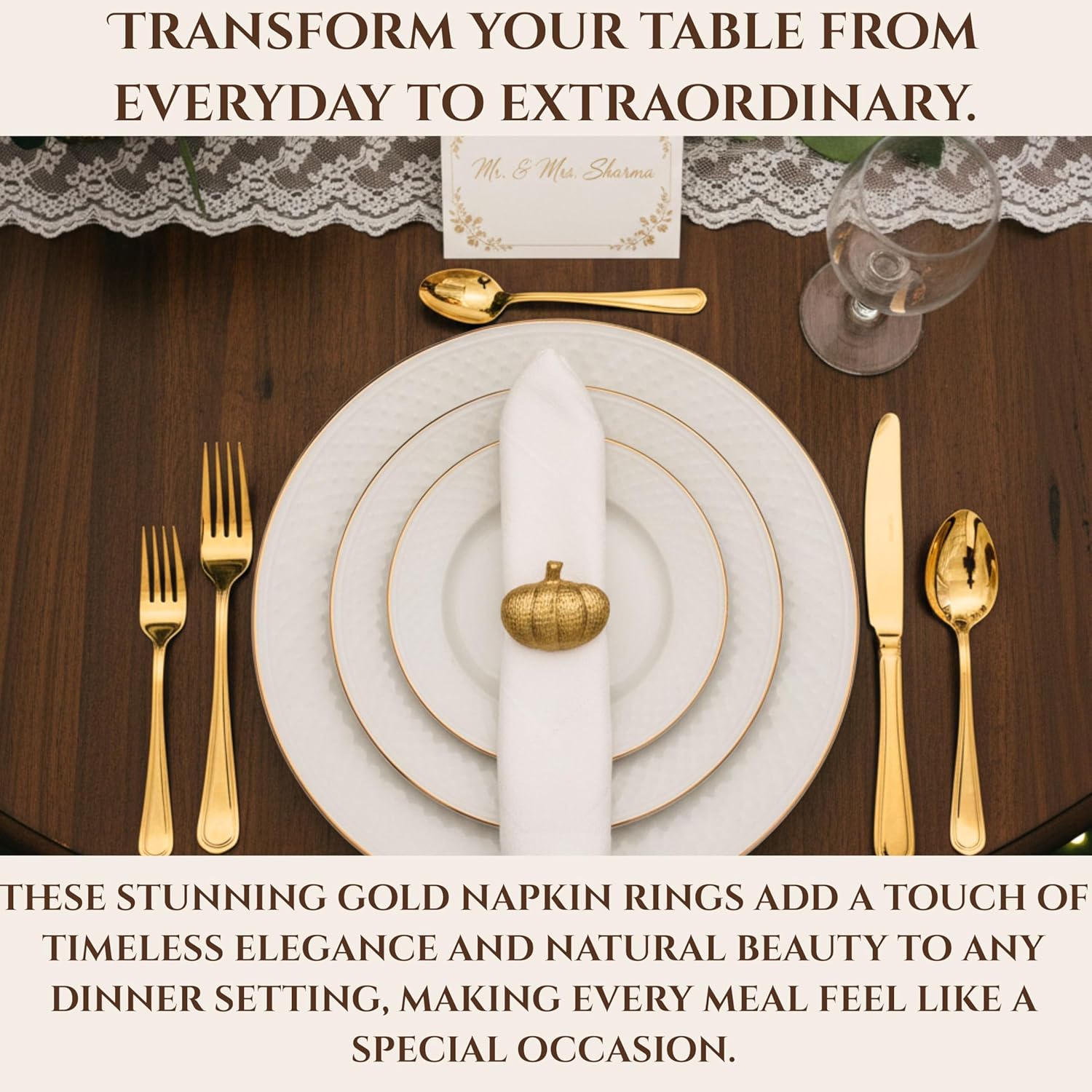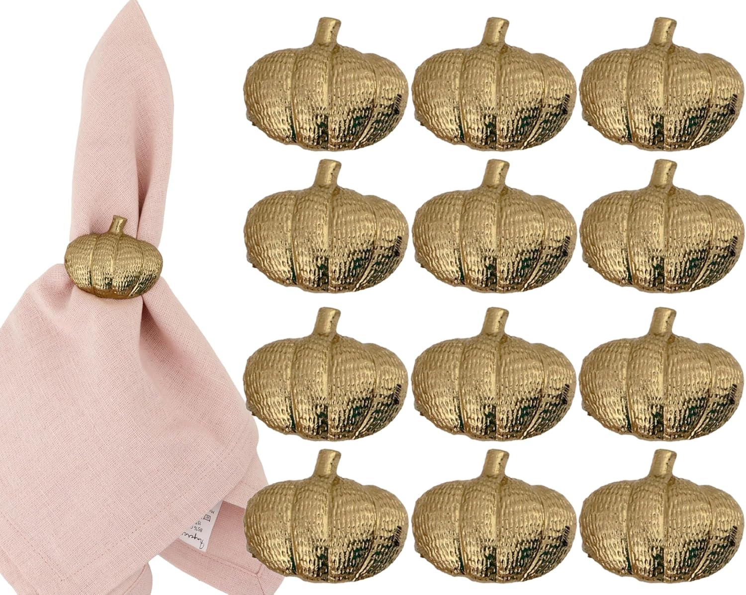 Set of 12 Pumpkin Napkin Rings | Premium Metal Fall Harvest Table Decor | Thanksgiving Dinnerware Holders, Autumn & Halloween Table Setting Accessories (Gold) - ALPHA Living HOME