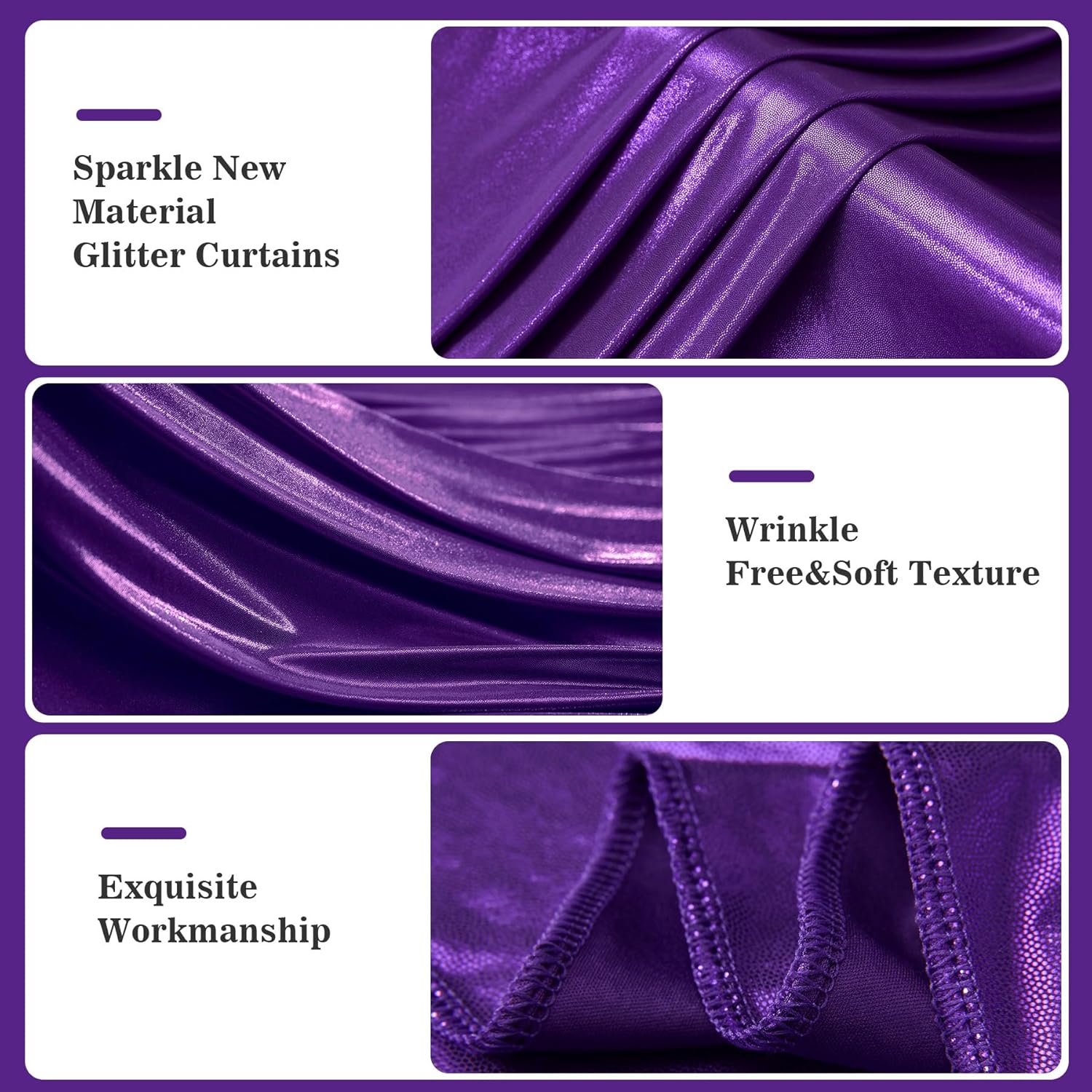 • New Glitter Purple Backdrop Fabric: Made from high-quality soft polyester and glitter, thicker and more durable than standard sequin backdrops, adding charm and sparkle to your parties.