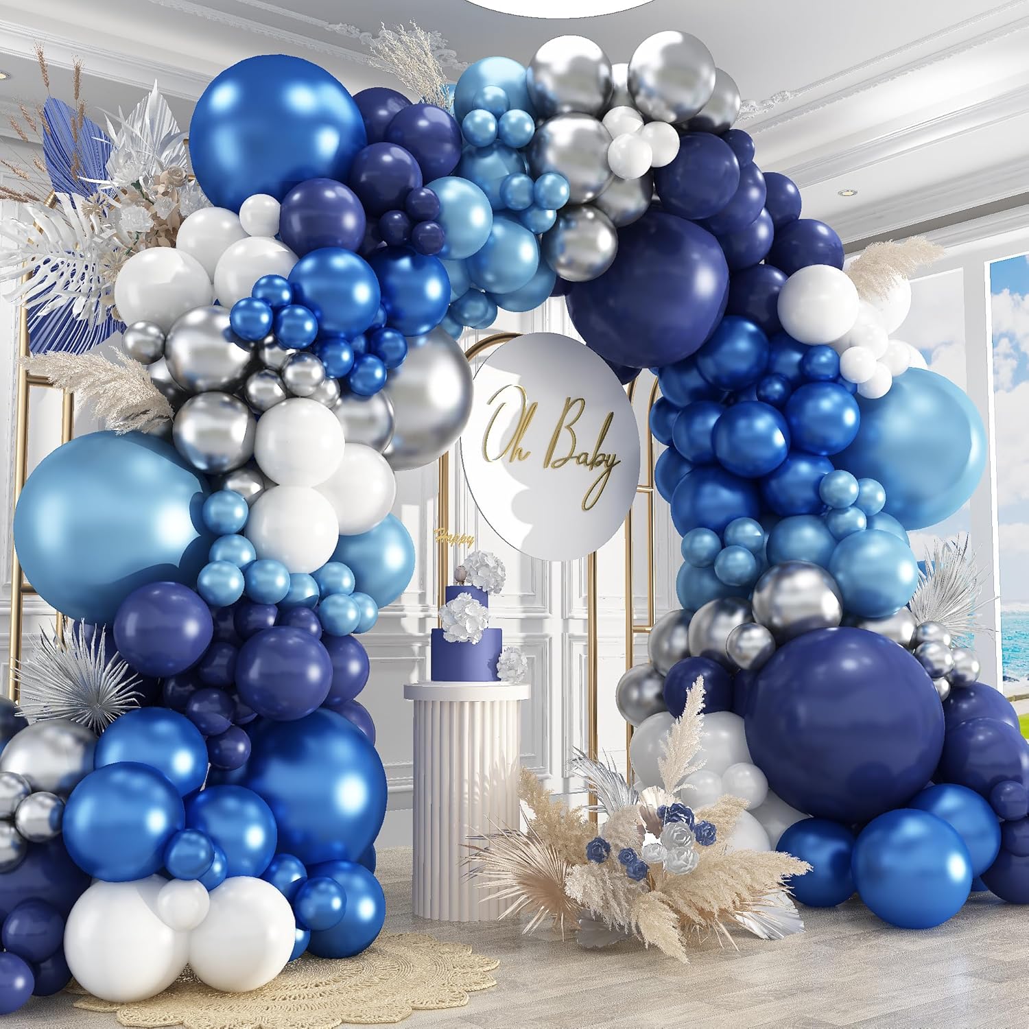 • APPLICABLE OCCASIONS: dark blue white silver balloon arch kit is perfect for blue birthday decorations, wedding, graduation, baby shower, birthday, christmas, halloween, graduations, festivals, engagements, anniversaries, etc, perfect decoration for any occasion.