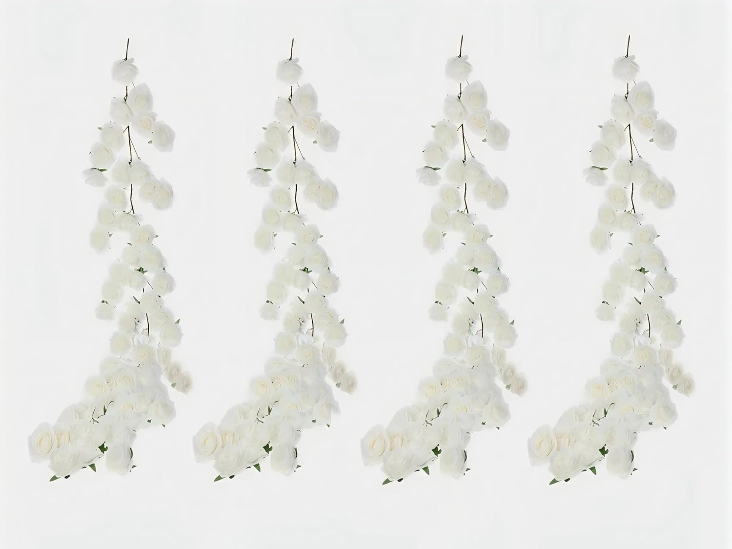 4 Pcs White Artificial Rose Vine Hanging Fake Flowers Garland for Wedding Anniversary Birthday Party Background Arch Garden Home Wall Room Decor