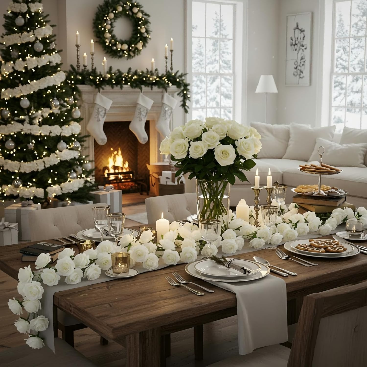 • Package Includes: you will receive 4 artificial white rose vines; Each rose garland is 6 feet long and diameter of each flower measures about 3.7 inches; Each rose wreath contains 62 white roses; If you feel that the length is not enough, you can connect multiple vines together for use