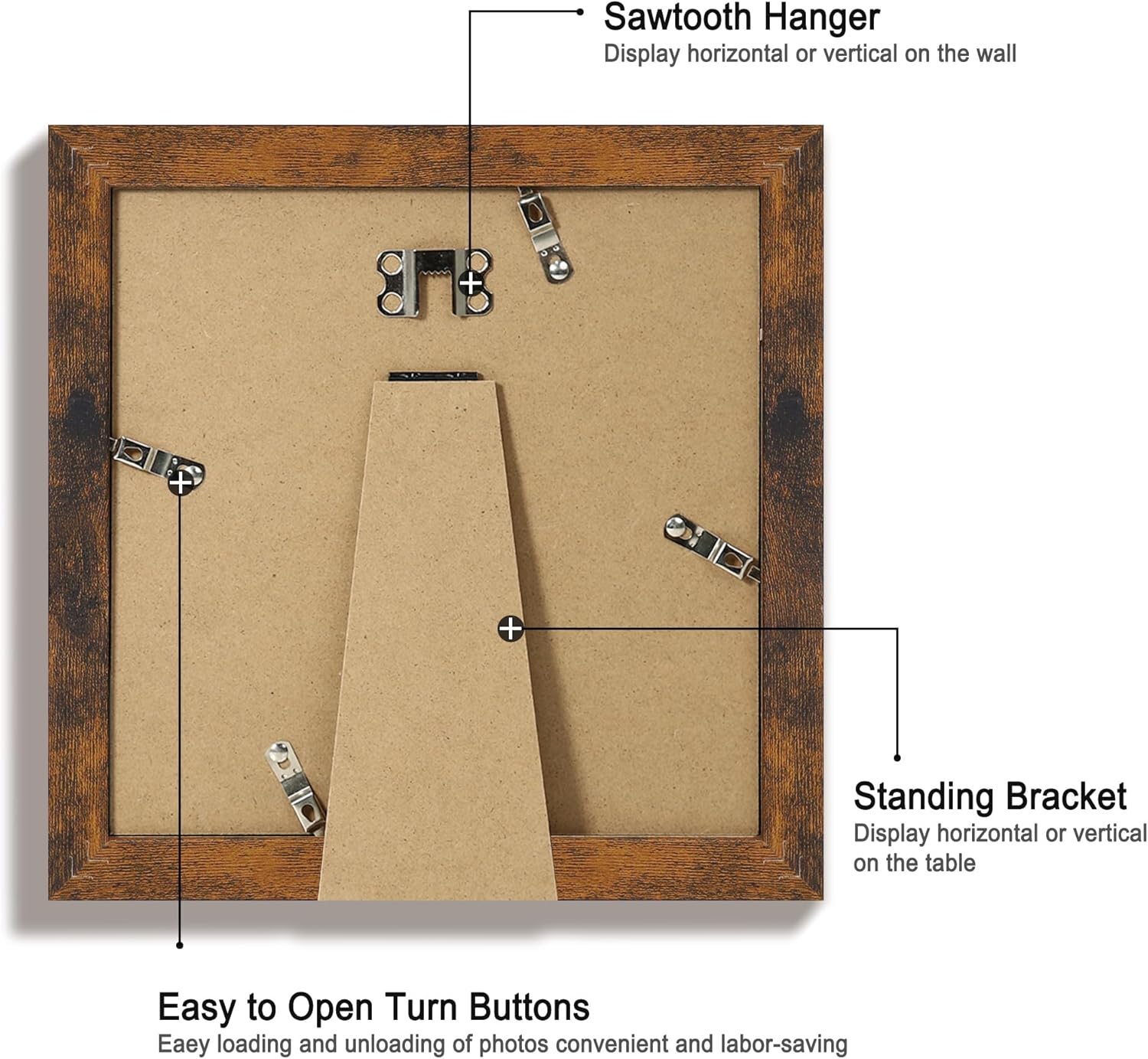 • Multi Frames Collage Set: Includes 4 frames in the same size. Perfectly fits 6x6 inch pictures with mat or 8x8 inch without mat. The frame opening display size is 0.5 inches smaller than the photo size for secure mounting.