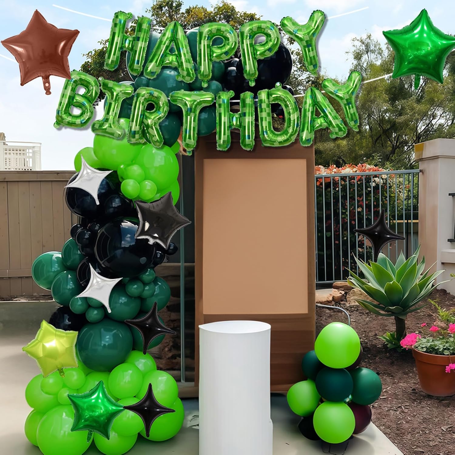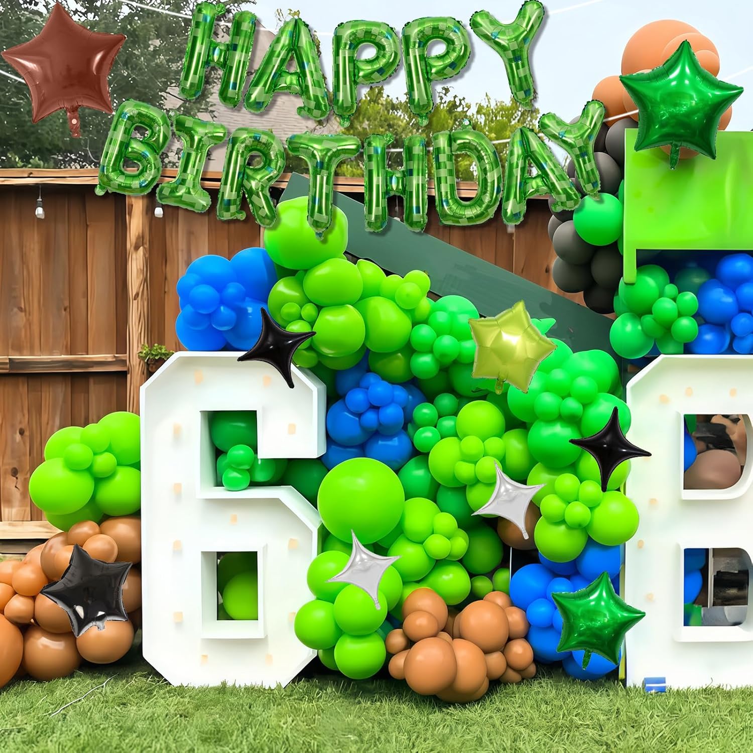 • Ultimate Pixel Party Decor – Create a retro gaming vibe with this complete set! Includes a 16" pixel green checkerboard "HAPPY BIRTHDAY" foil balloon, 18" dark green & brown star balloons, and 7 pixel-style star balloons (silver, black, green). Comes with ribbon, glue dots, and a straw for instant setup!