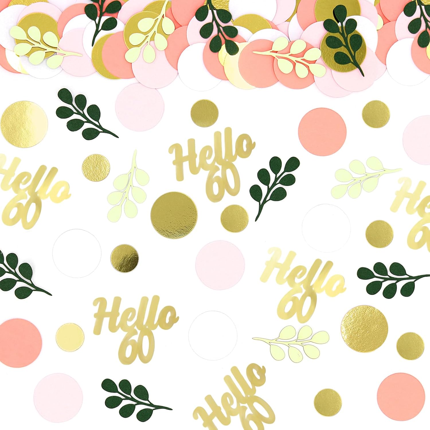 • 2.The hello 60 confetti for tables pack include 3 elements(round dots/sage leaf/hello 60 letters) ,total 300pc,nice for 60th birthday table decorations for her.
