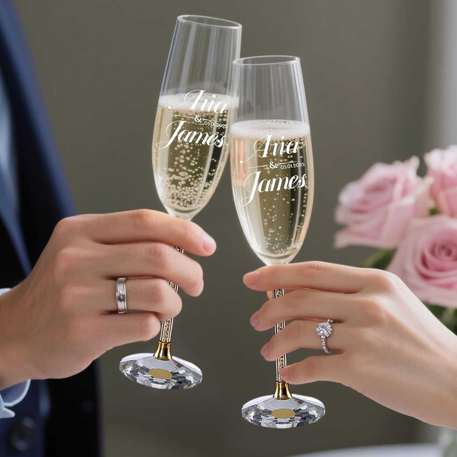 • Personalized Mr & Mrs Champagne Flutes:Personalize with the bride and groom’s names and wedding date to create a unique, lifelong keepsake. Advanced tech ensures vivid, long - lasting details that stay clear through every toast