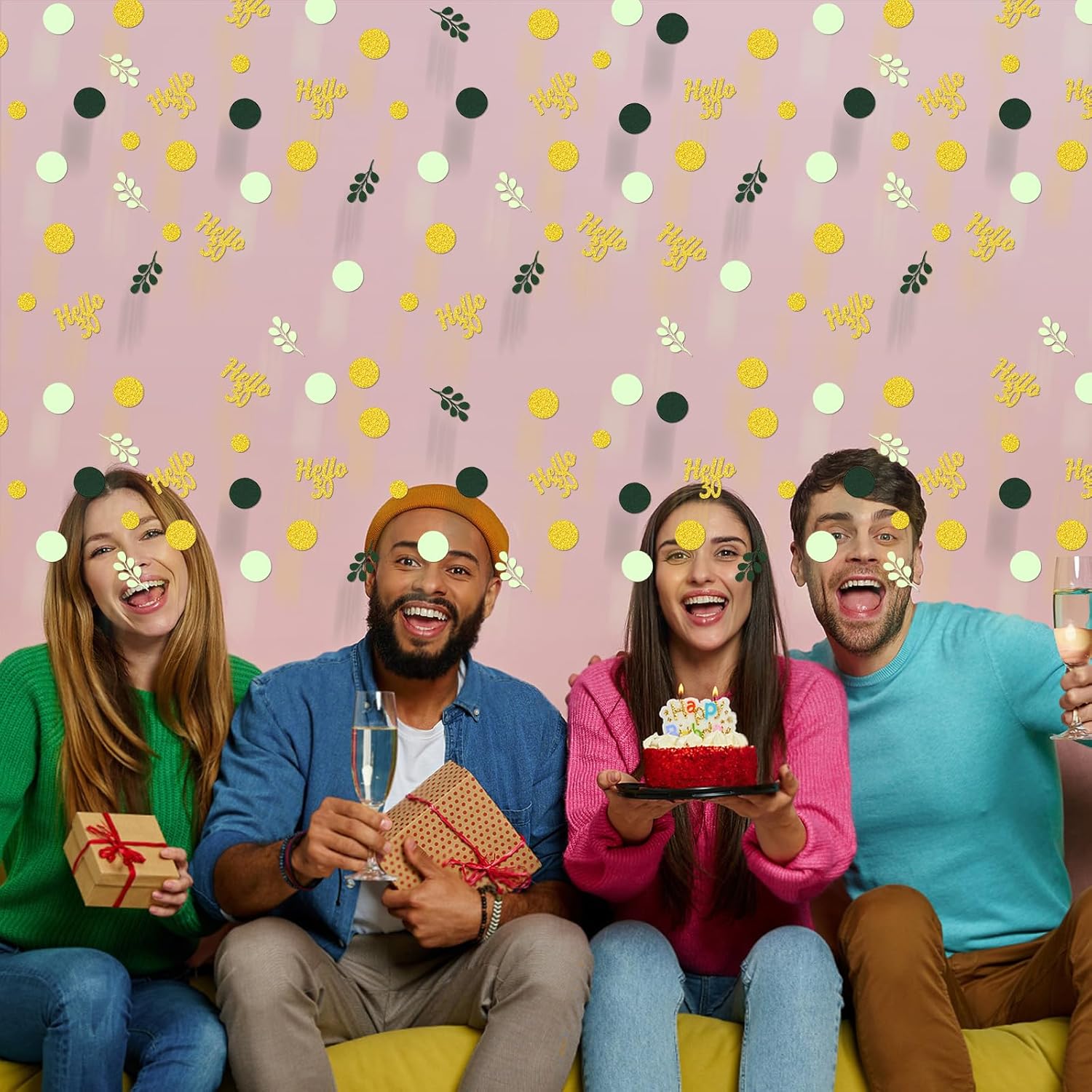 • 1.Great Addition to 30 Birthday Party.The green and gold circle dots with hello 30 confetti scatter are shiny and fresh,very sparkle,a perfect addition to 30th birthday theme,nice green 30th birthday decorations for women/men.