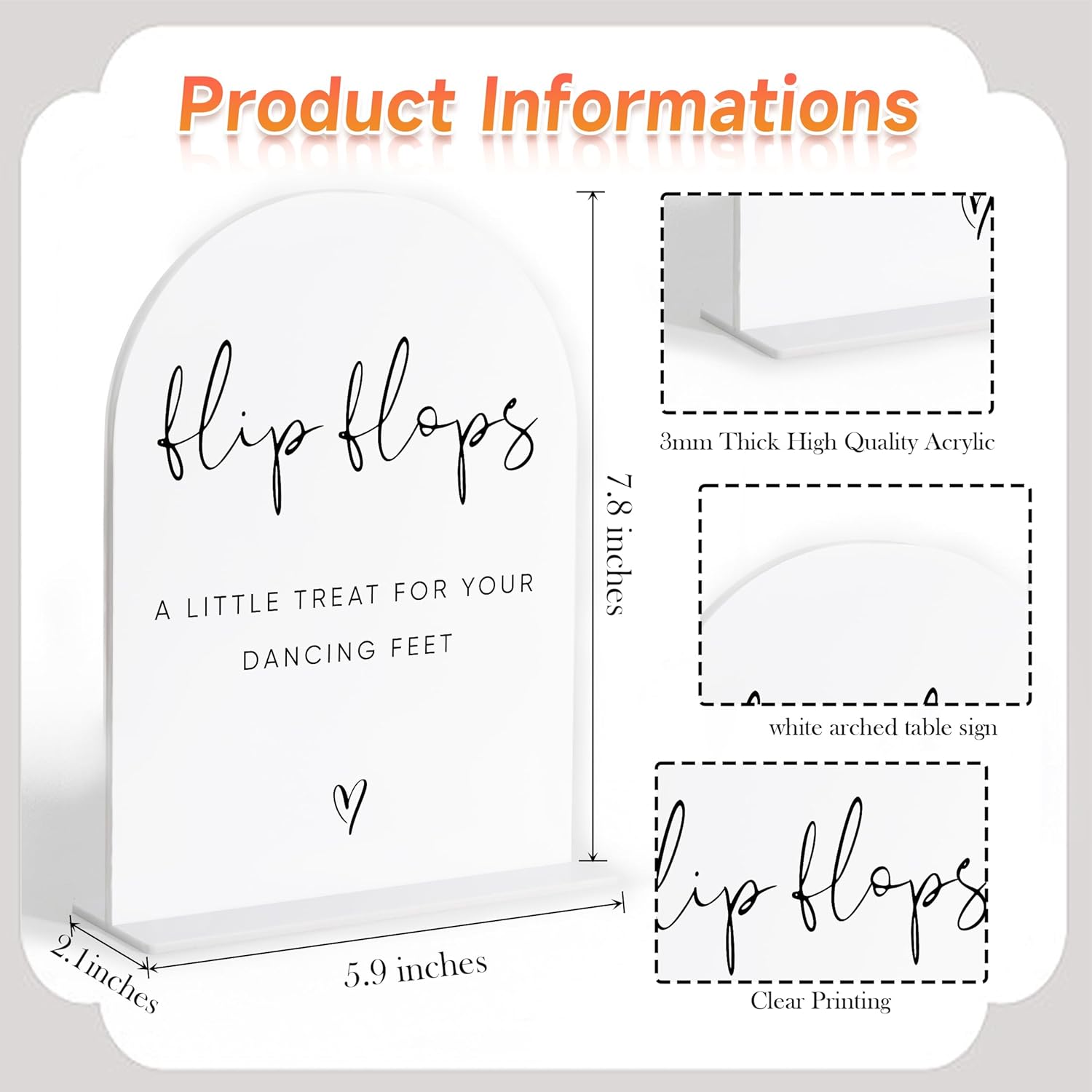 Wedding Flip Flops for Guests Sign, White Arch Acrylic Sign, Wedding Dance Floor Props, Bridal Shower Decor, Engagement Party Decor, Centerpiece Table Decorations Party for Bride and Groom-17