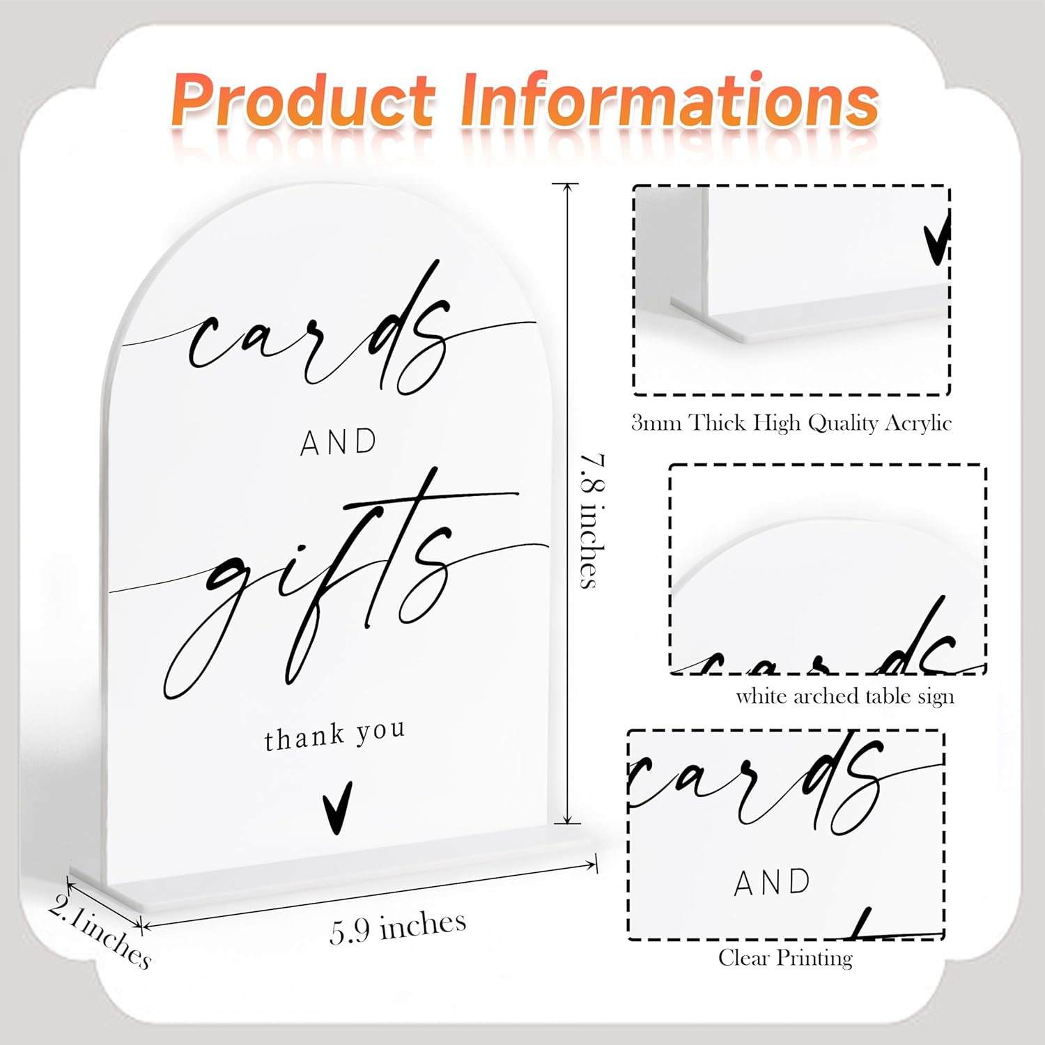 Cards and Gifts Sign, White Arch Acrylic Wedding Sign, Wedding Favors for Guests, Bridal Shower Decor, Engagement Party Decor, Centerpiece Table Decorations Party for Bride and Groom-2