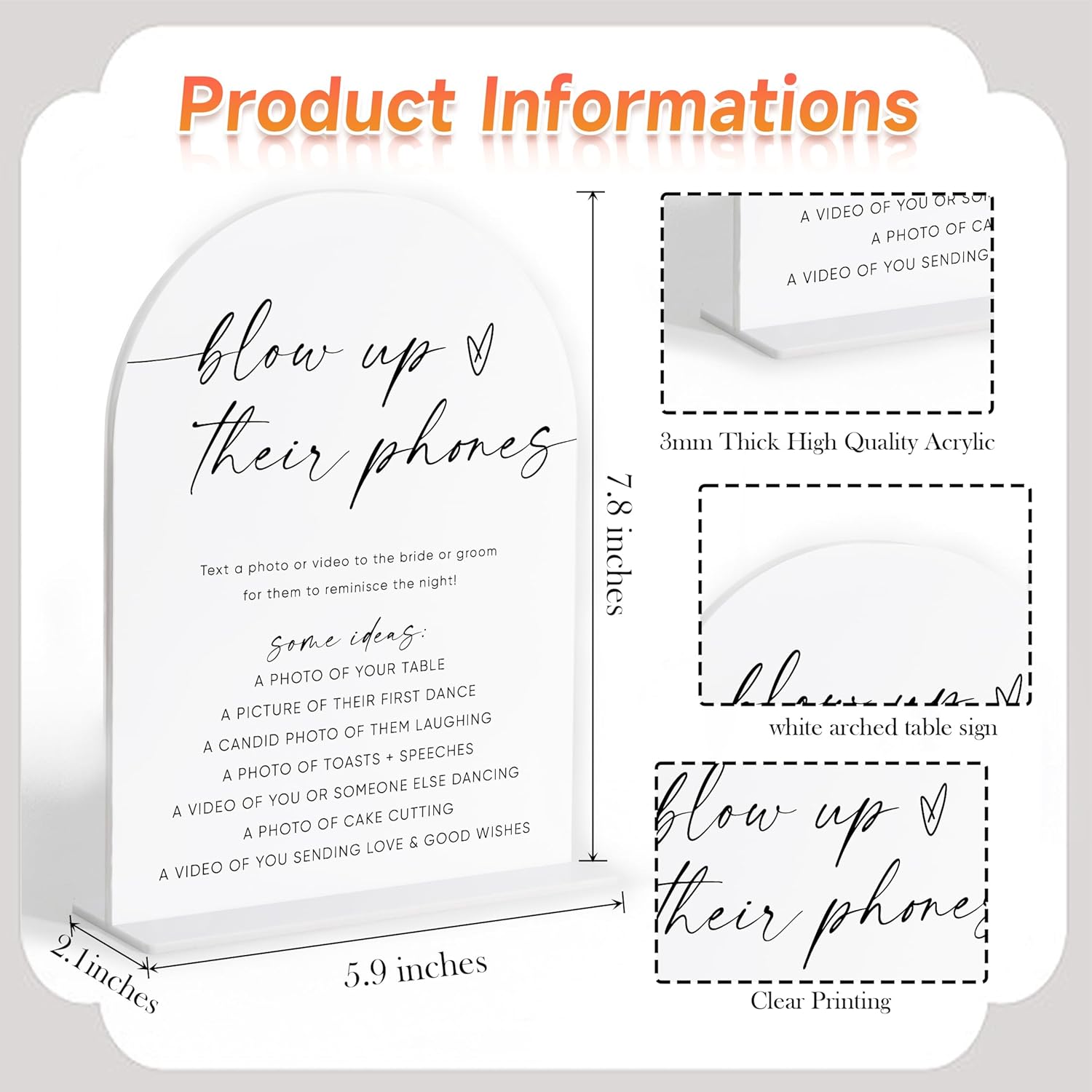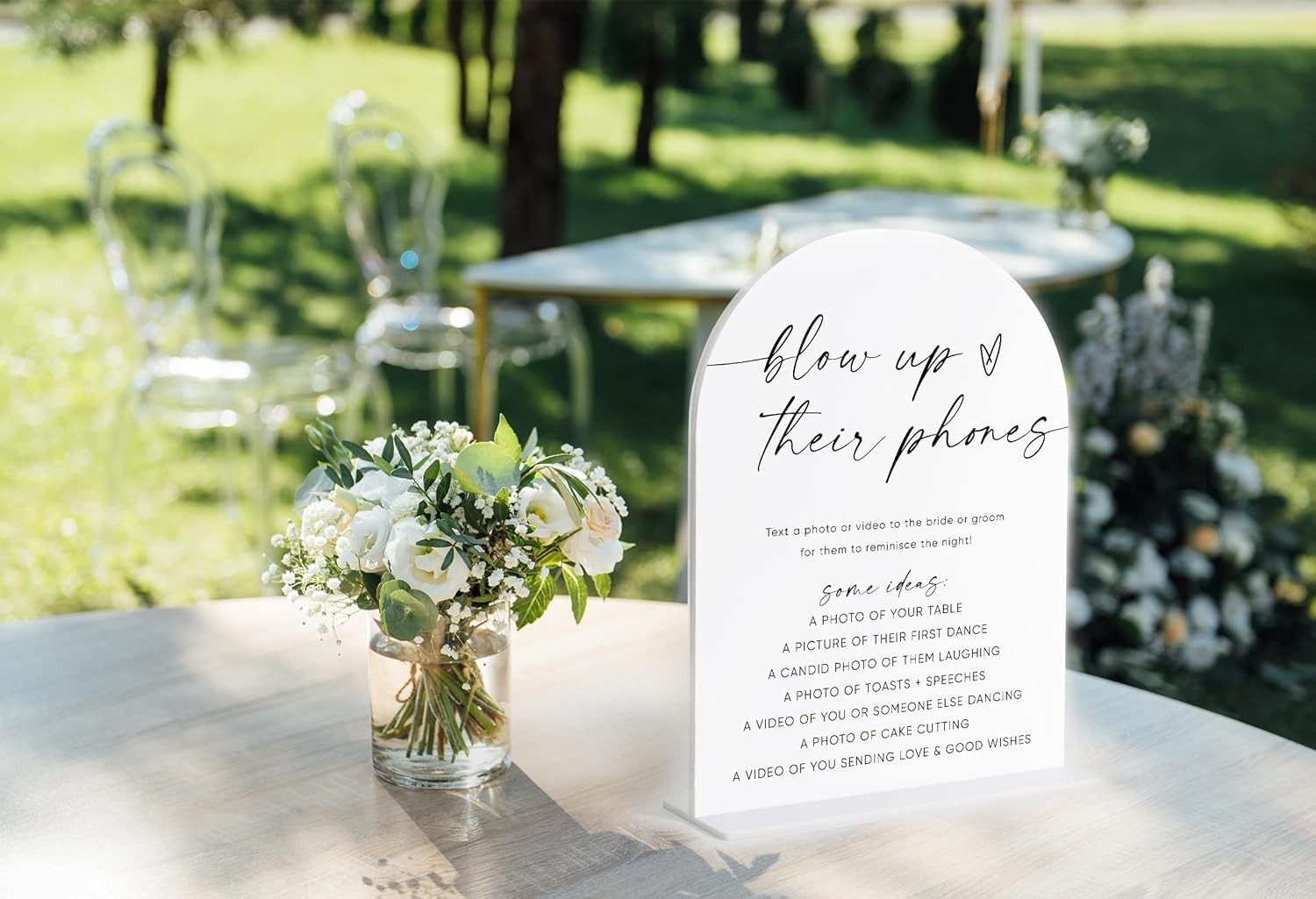 Blow Up Their Phones Sign, White Arch Acrylic Wedding Sign, I Spy Wedding Game, Bridal Shower Decor, Engagement Party Decor, Centerpiece Table Decorations Party for Bride and Groom-22