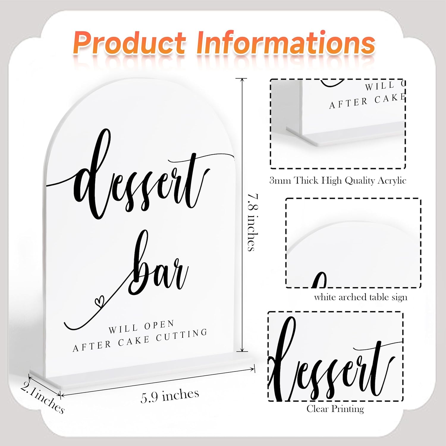 Dessert Bar Sign, White Arch Acrylic Wedding Sign, Dessert Table Decor, Wedding Reception Decorations, Bridal Shower Decor, Centerpiece Table Decorations Party for Bride and Groom-10