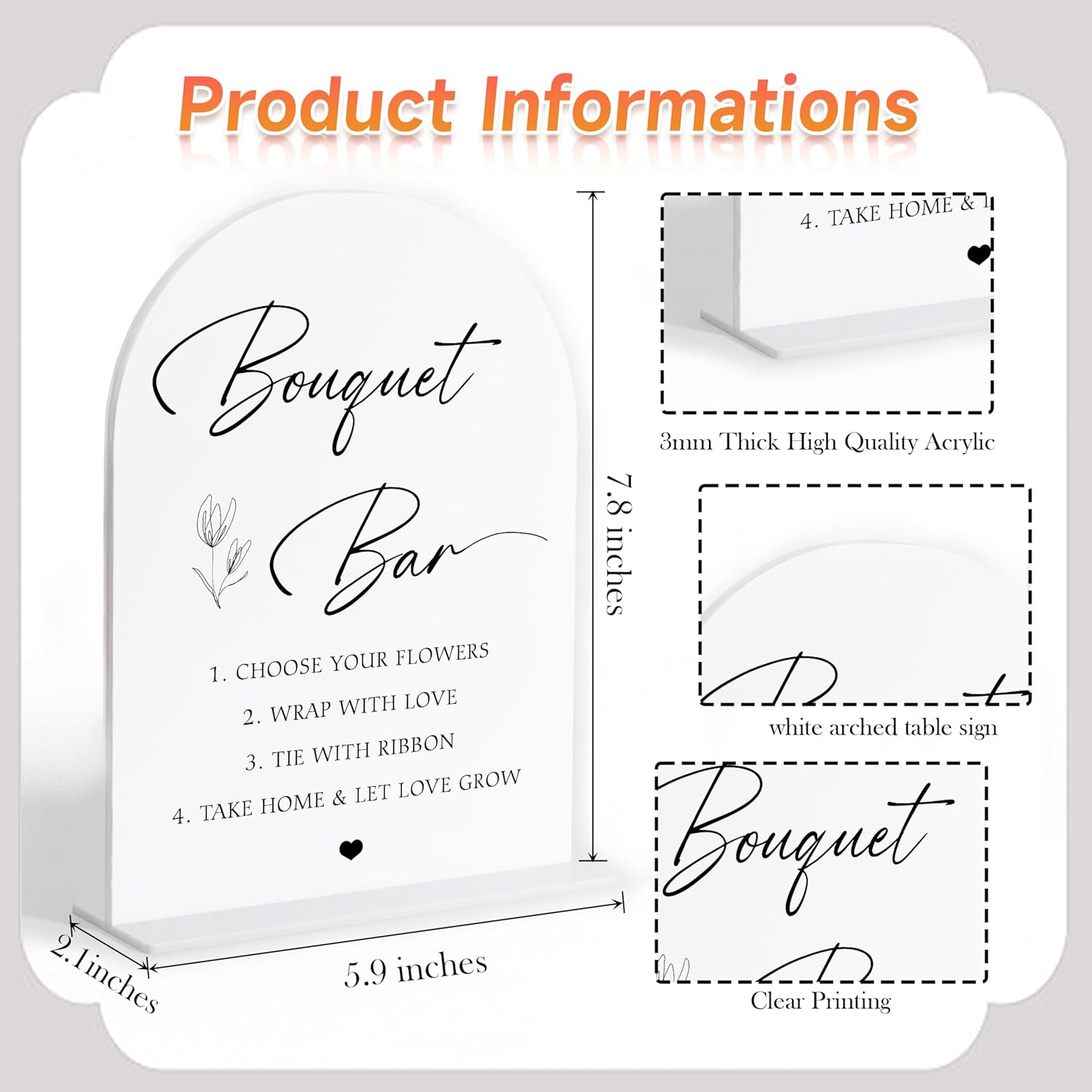 • Thoughtful Gift Idea: A wonderful wedding gift for friends or family. This white arch acrylic wedding sign adds a personal touch to engagement parties or bridal showers, making it a cherished keepsake.