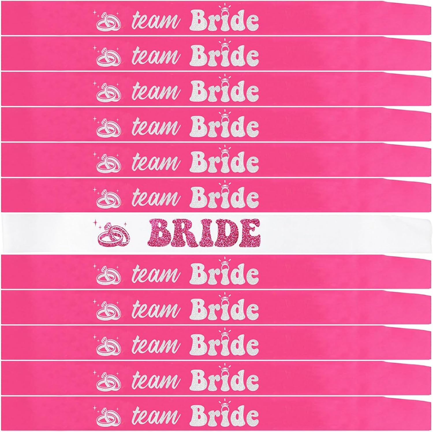 12 PCS Bride Sash Bachelorette Party Bride to Be Team Bride Sashes Maid of Honor Bridesmaid Sash for Bridal Shower and Hen Party Decorations Favors,Pink Silver