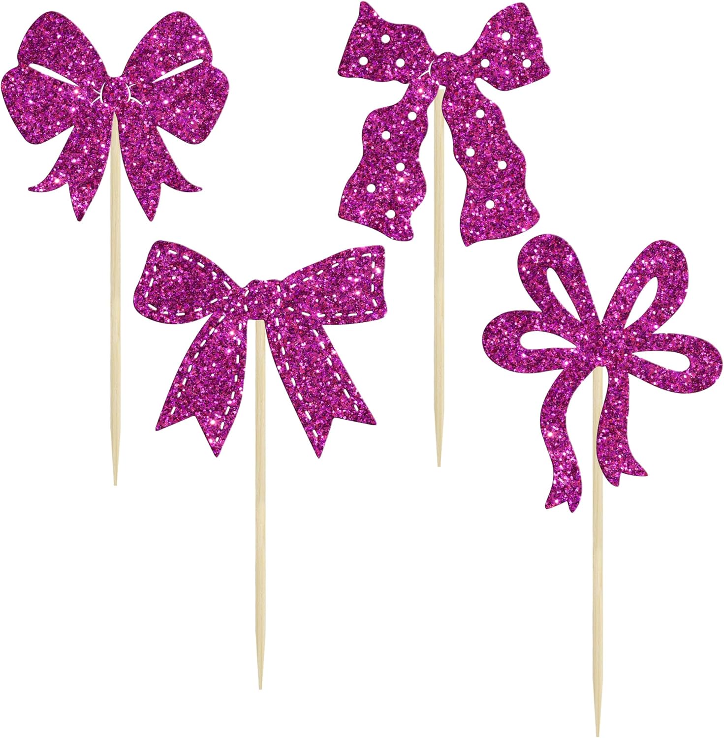 • 【Birthday Party Supplies】: 24Pcs Bow Cupcake Toppers are perfect for pink bow party, pink bow birthday party, coquette birthday party, baby shower, bridal shower, wedding, pink bachelorette party, family gathering party cupcake decorations, they will make your cupcake more attractive and bring the fun to your party, make your guests fall in love with them!
