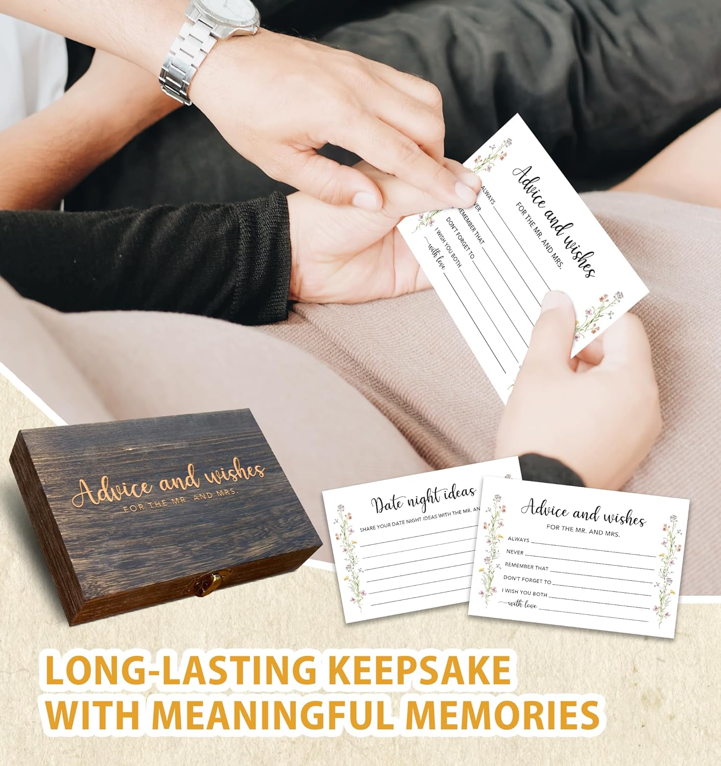 Advice and Wishes for the Mr and Mrs Box - 50 Pcs Wedding Advice Cards Bridal Shower Game Cards Reception Guest Book for Bride Groom Newlywed Engagement Party Decoration(Wildflower) -A04