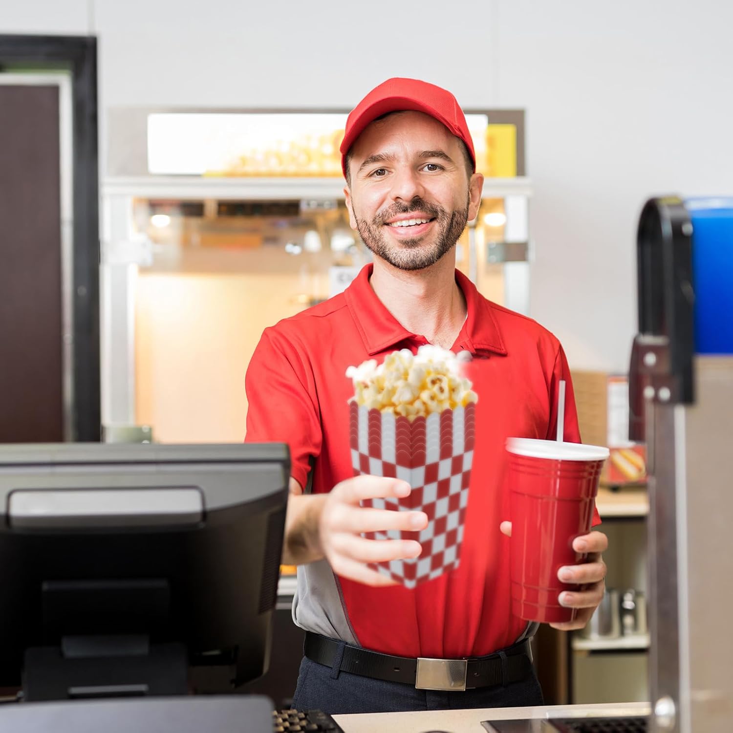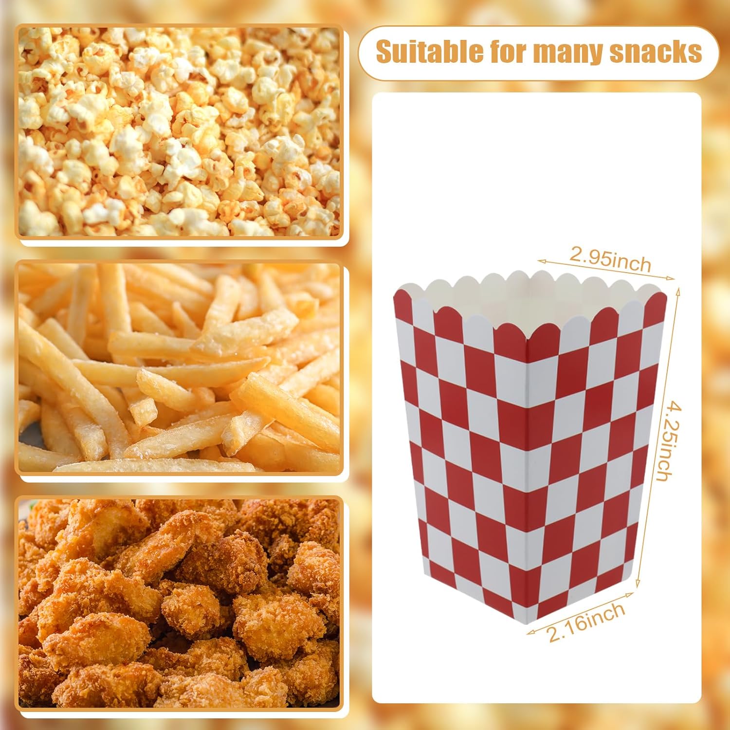 50 Pcs Popcorn Boxes Mini Paper Popcorn Box Cardboard Popcorn Container for Party Disposable Snack Candy Popcorn Bags Popcorn Holder for Movie Nights Birthday Wedding (Red Checkered)