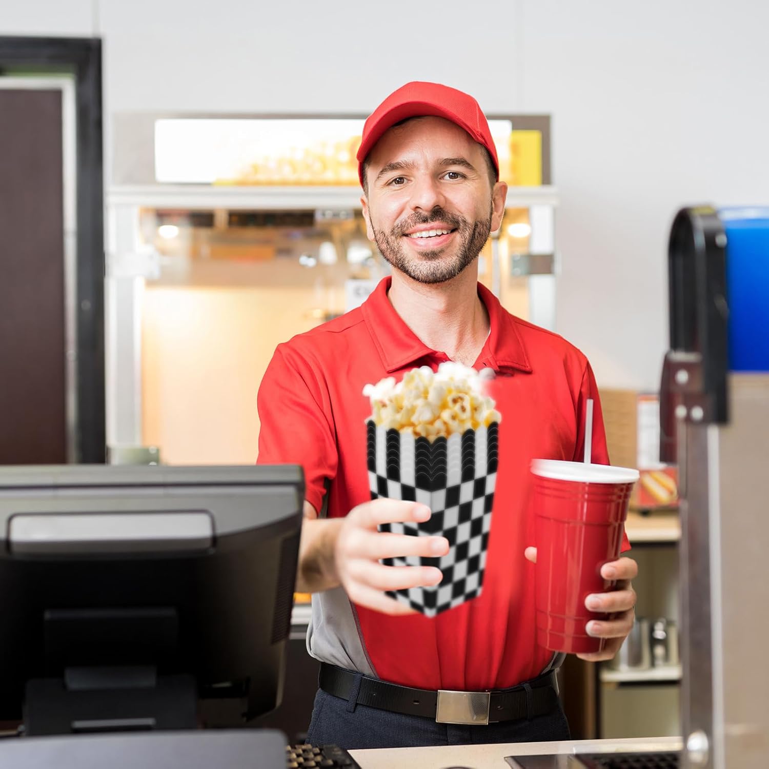 50 Pcs Checkered Popcorn Boxes Mini Paper Popcorn Bags for Race Car Party for Movie Nights Birthday Wedding (Black Checkered)