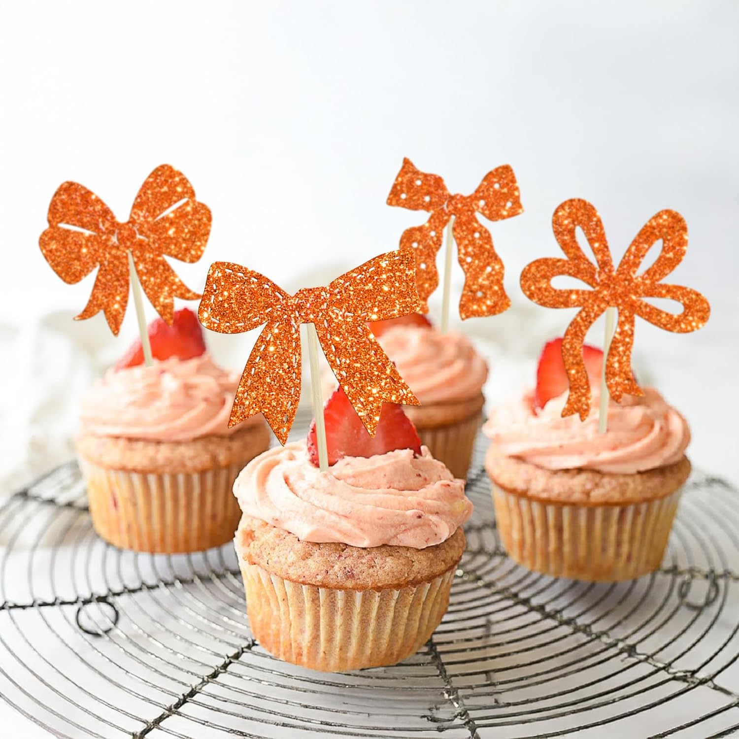 • 【NO Required】: Bow Cupcake Toppers can put in the cake directly! These Bow Cupcake Toppers saves your time and super easy to use. You can easily dress up your cakes, yes! but don't stop there, put them into desserts, cookies, fruit pieces, appetizers, muffins and so much more!