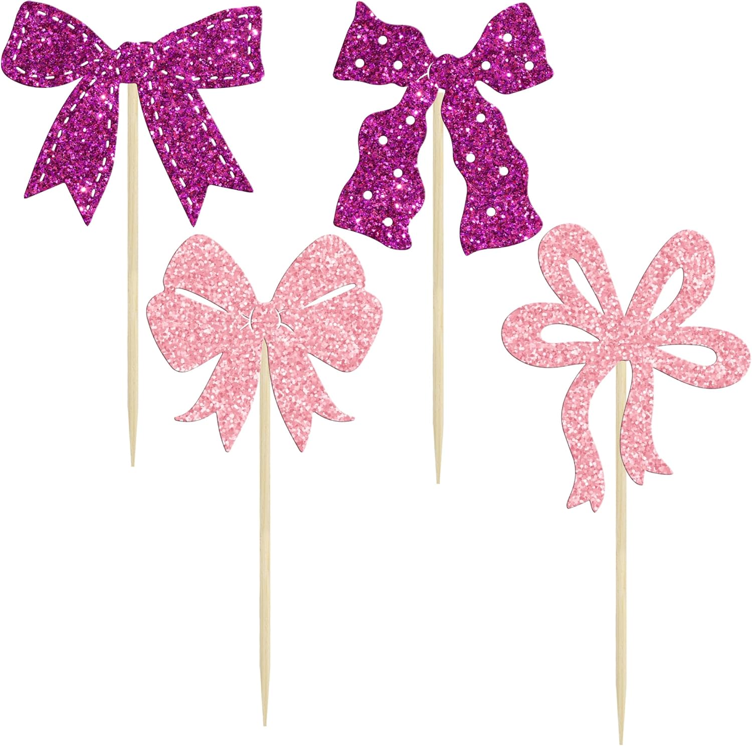 • 【Birthday Party Supplies】: 24Pcs Bow Cupcake Toppers are perfect for pink bow party, pink bow birthday party, coquette birthday party, baby shower, bridal shower, wedding, pink bachelorette party, family gathering party cupcake decorations, they will make your cupcake more attractive and bring the fun to your party, make your guests fall in love with them!
