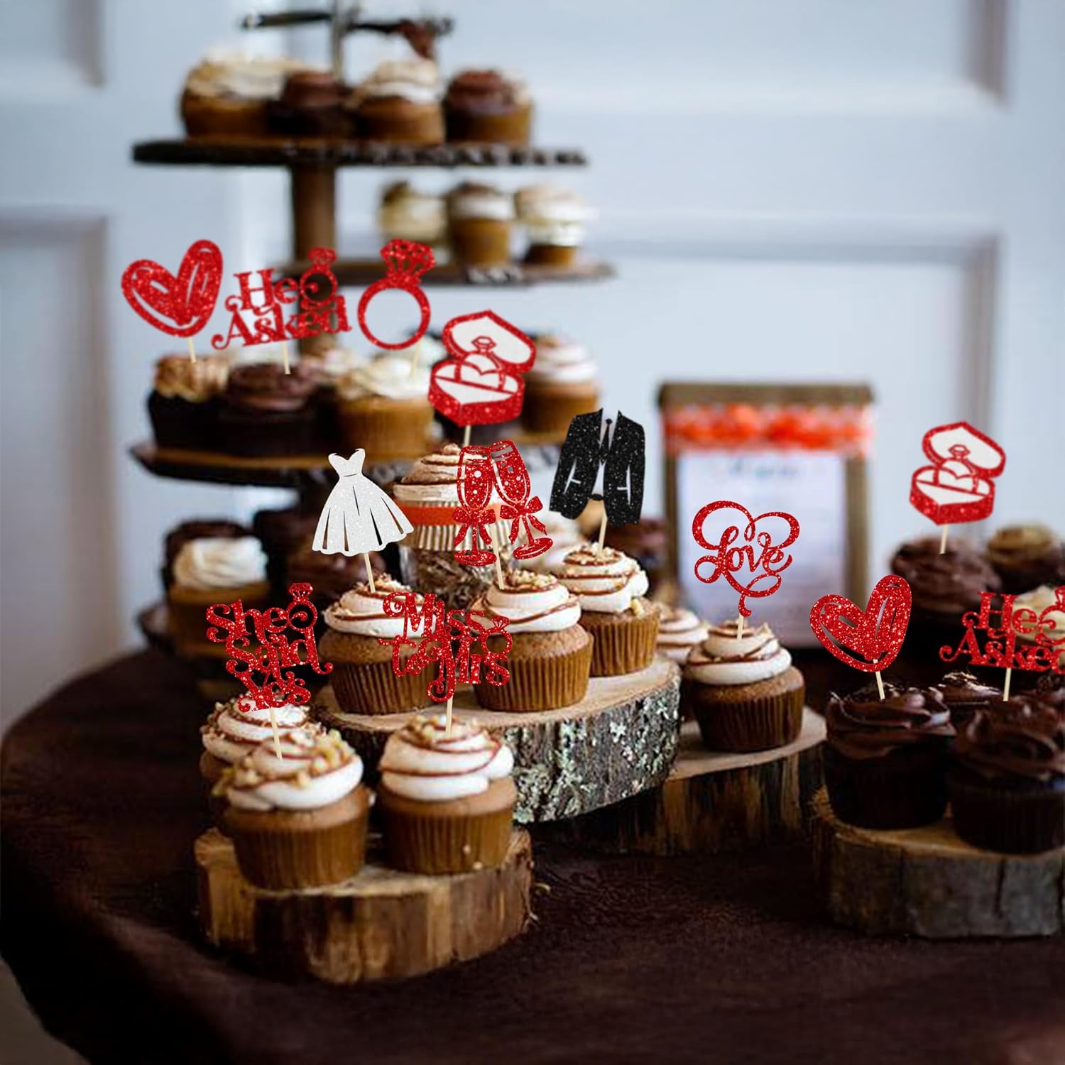 • --She Said Yes Cupcake Toppers are so cute and good for wedding engagement theme party, he asked she said yes theme party, bridal shower theme party, miss to mrs love theme party, bachelorette theme party cupcake decorations. They can make your cupcake more attractive and bring the fun to your party. You can also apply them for ice cream, fruits, cookies and other desserts.