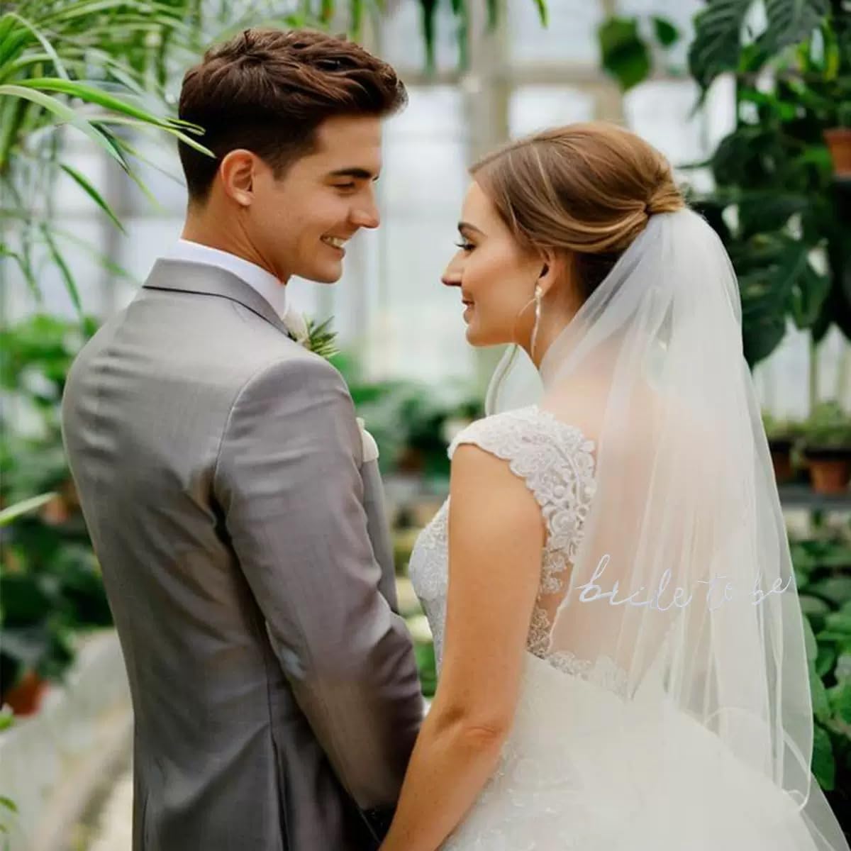• 🌸 Delicate White Veil – Lightweight veil with embroidered letters, fine craftsmanship, and unique elegance to enhance bridal charm.