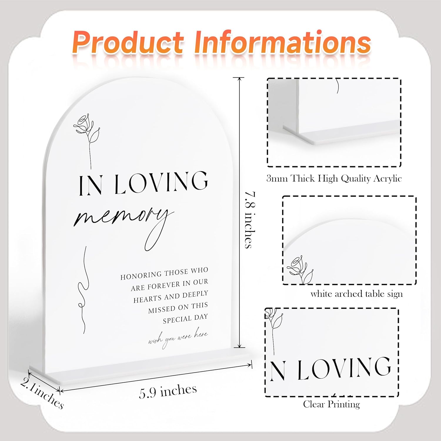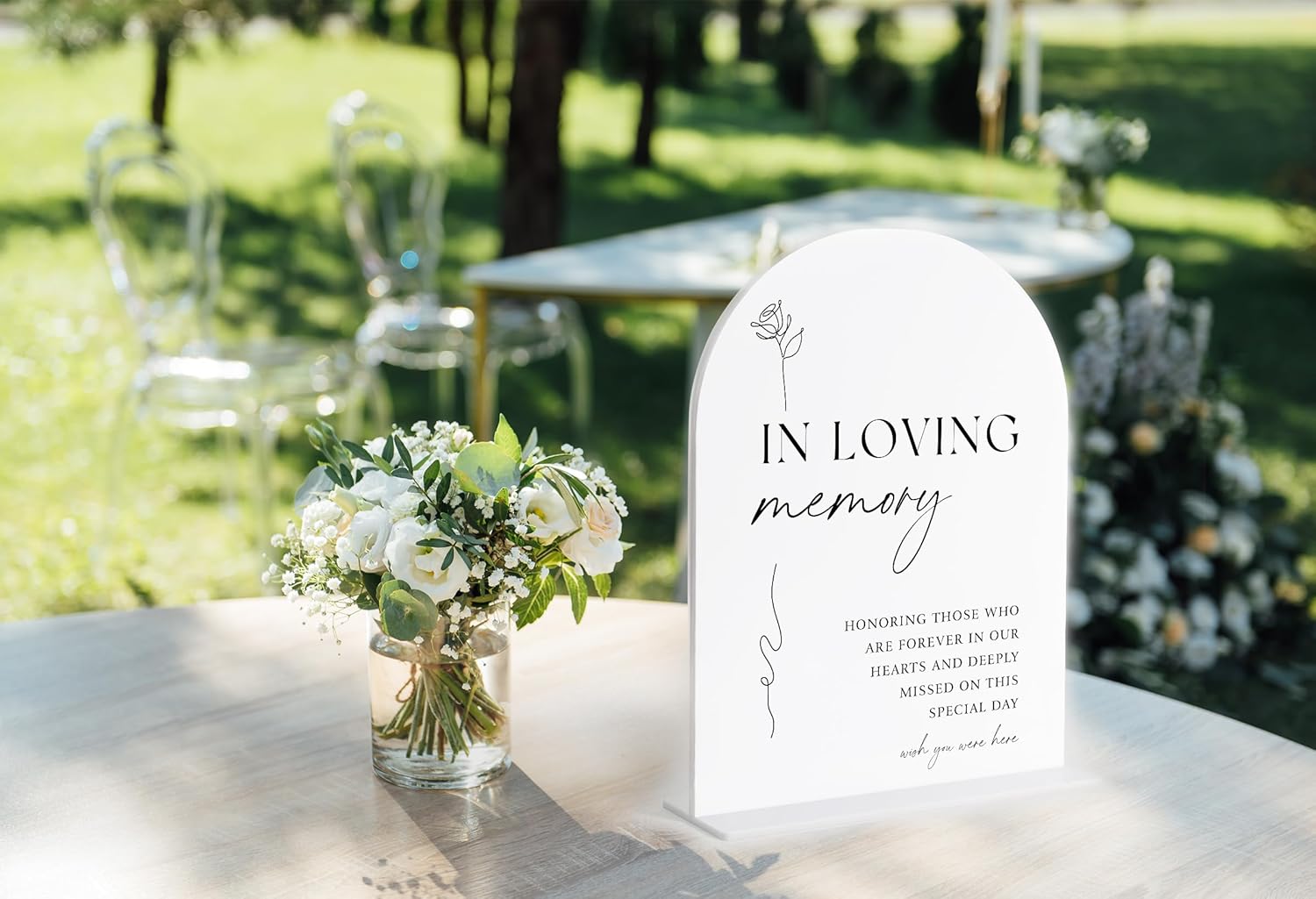 In Loving Memory Sign, White Arch Acrylic Wedding Sign, Memory Table Signs for Wedding Reception and Event Party, Bridal Shower Decor, Centerpiece Table Decorations Party-7