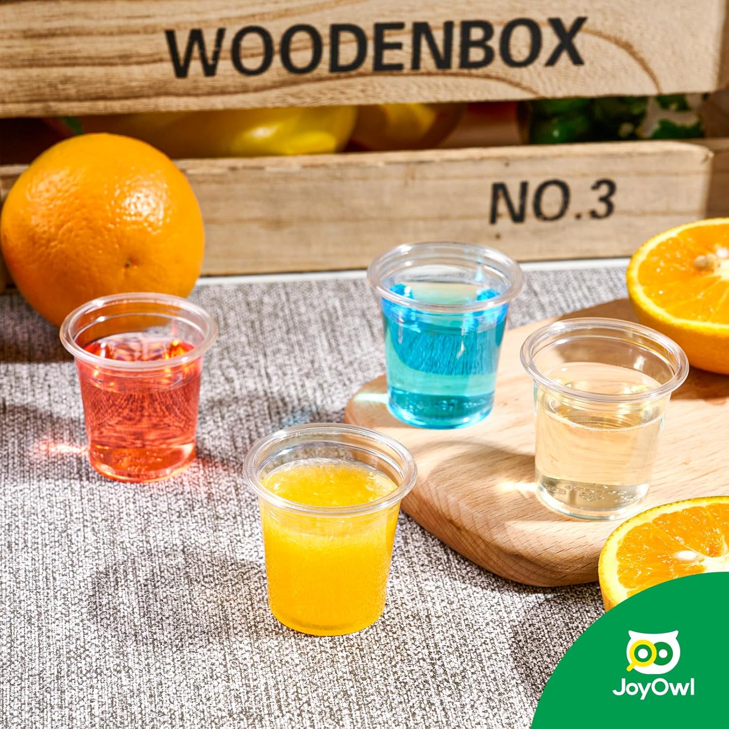 • Crystal Clear PET Plastic: These plastic shot cups are made from BPA-free PET material, featuring crystal-clear transparency and broken proof