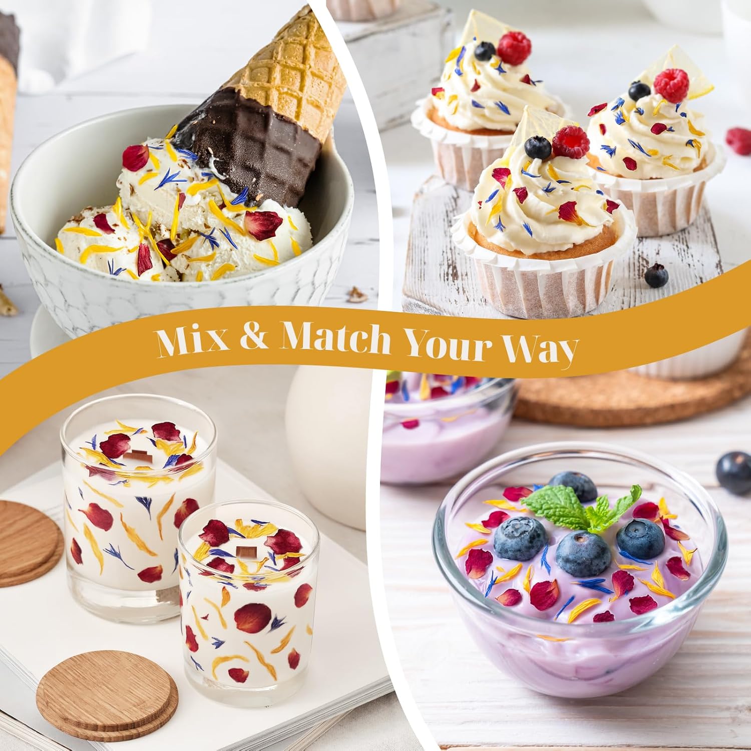 • Perfect for Edible & Craft Use: Ideal for baking, cupcakes, edible flowers cake decorations, cocktails, teas, drinks, salads, and gourmet dishes. Also great for DIY soap making, potpourri, bath bombs and candle making.