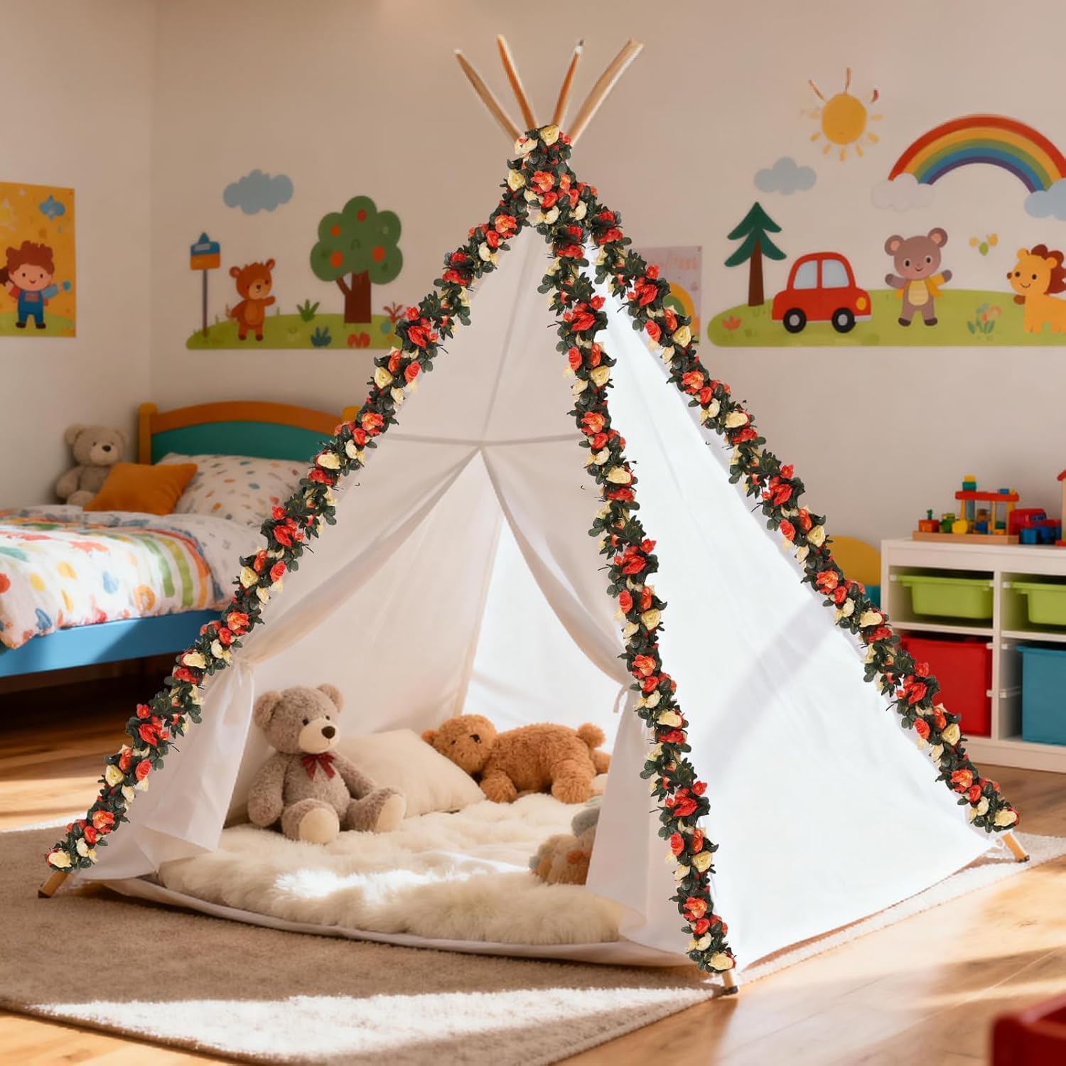 • PACKAGING: Total length 41FT, each vine 8.2FT (250CM), 5 vine plants hanging fake flower garland. Each plant has 45 flowers. Rose heads are 1.6” (4CM) in diameter. 45 leaves. These 5 rose vines are fluffy enough to decorate your room!
