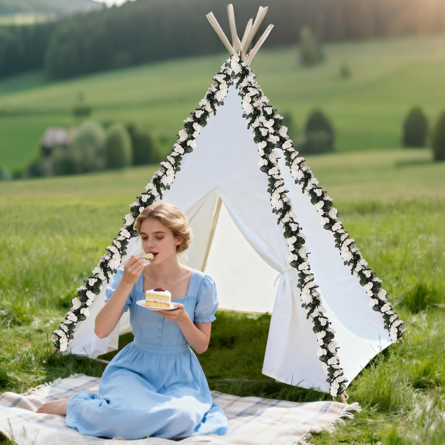 5 Pcs 41FT Flower Garland, Artificial Rose Garland Flowers Plants Fake Flower Hanging Rose Ivy, Birthday Party Valentine's Day Wedding Wall Arch Decor(White)
