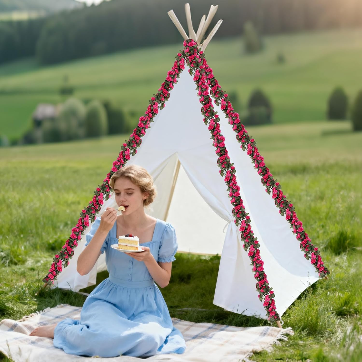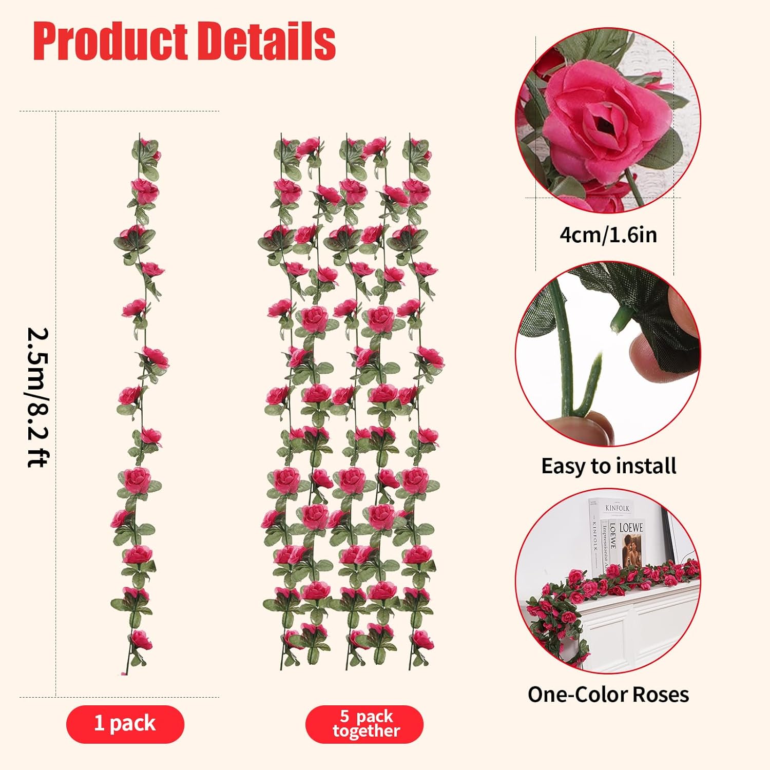• PACKAGING: Total length 41FT, each vine 8.2FT (250CM), 5 vine plants hanging fake flower garland. Each plant has 45 flowers. Rose heads are 1.6” (4CM) in diameter. 45 leaves. These 5 rose vines are fluffy enough to decorate your room!