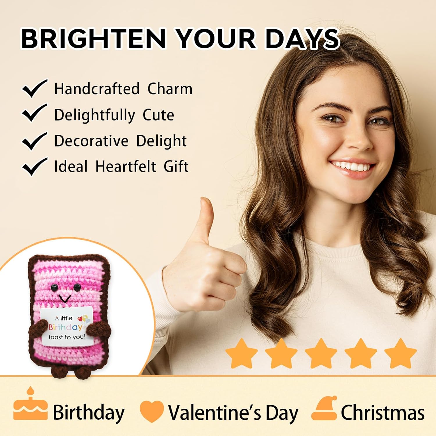 • 【Cheerful Crochet Friend】This handcrafted doll radiates positivity,offering comfort and joy in everyday life.Its uplifting presence reminds you to focus on the bright side,helping you stay hopeful and resilient during tough times.A little companion that strengthens the heart with warmth and optimism
