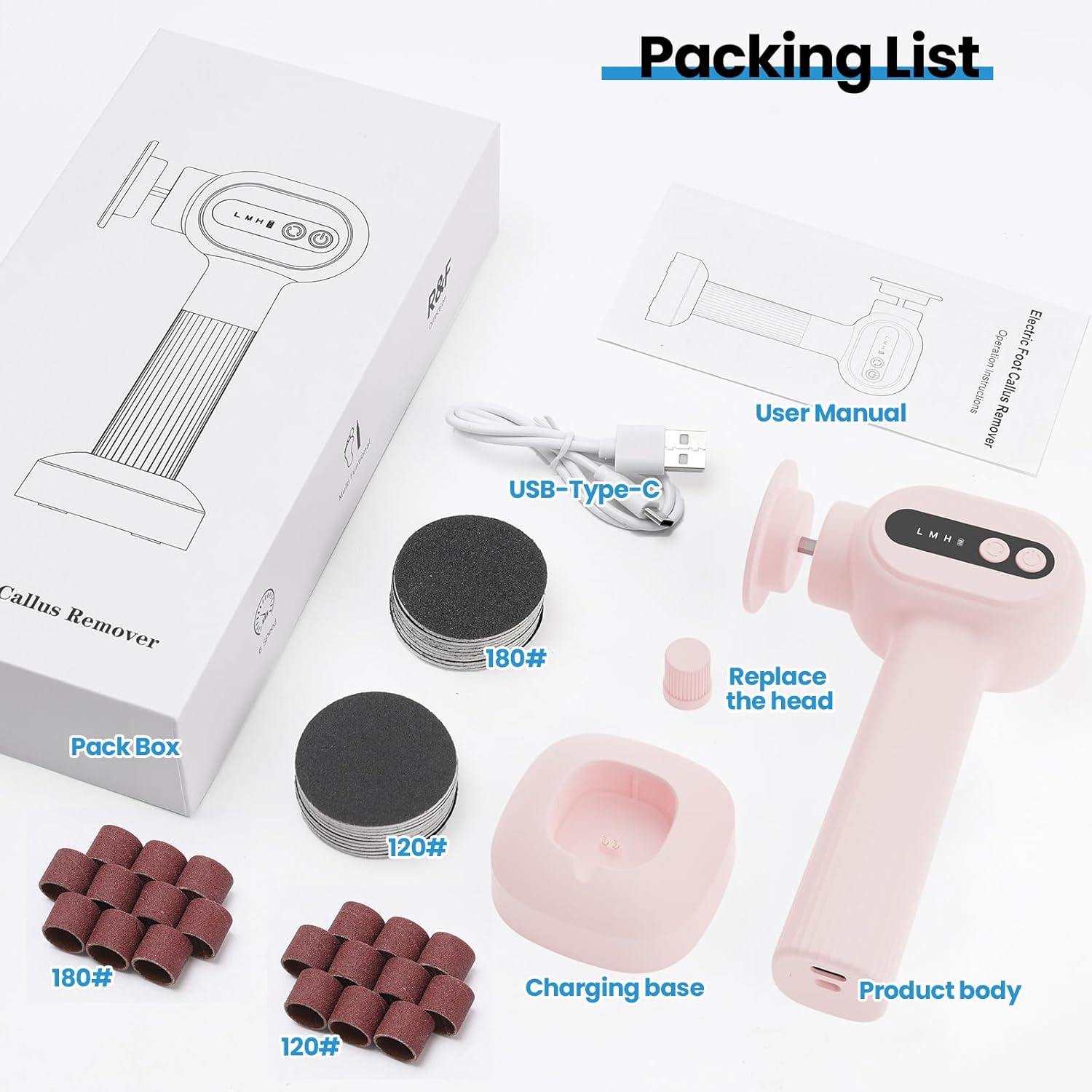 • 60 PCS Replacement Sandpapers Included in the Gift Box : 20 PCS each sandpaper(Fine 120 Grit + 60pcs Smooth 180 Grit),20 PCS ring sandpaper for nail grinder.Exclusive foot smoother pedicure tools for your feet