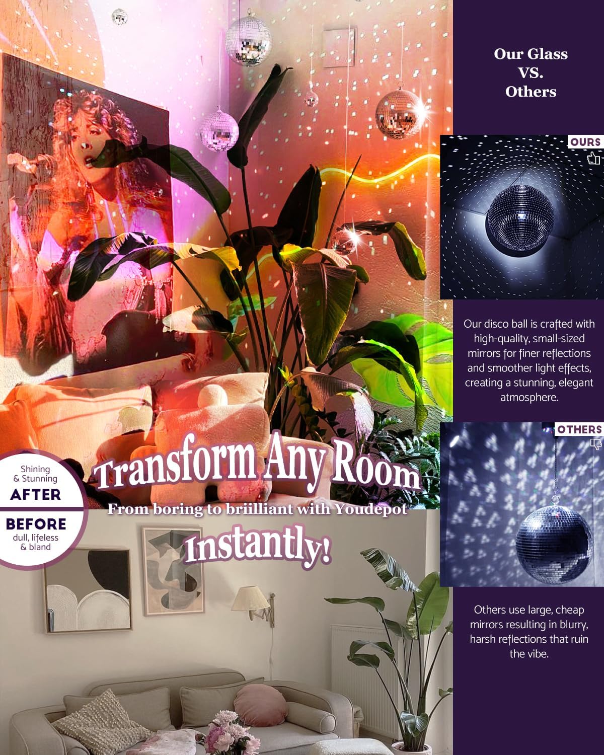 • Premium Mirror Finish for Light Reflection Each disco ball small features shiny tiles that reflect light beautifully, creating a vivid light up disco ball effect for parties or displays.