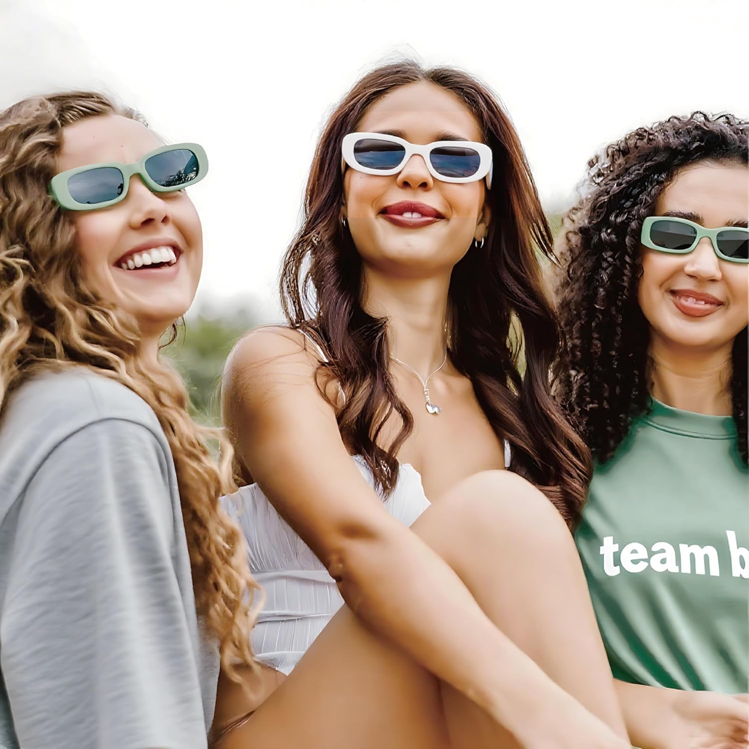 • Retro Charm: With a sleek rectangular frame, these bridesmaid sunglasses bring a nostalgic retro vibe that elevates any look. Their stylish design isn’t just for show—they effortlessly complement a range of outfits, whether you’re dressing up for a bachelorette party, posing at the bridal shower, or celebrating outdoors on the wedding day.