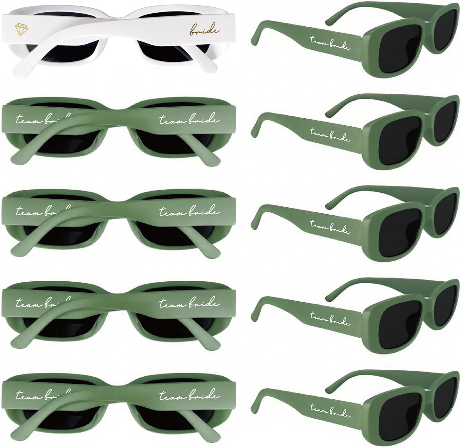 • Bachelorette Sunglasses Set: This bachelorette party essentials kit is designed to make your pre-wedding celebrations unforgettable-featuring 1 pair of sunglasses emblazoned with "Bride" and 9 pairs of coordinating "Team Bride" shades for the bridesmaids. Perfect for capturing that "bride and her crew" magic, this bachelorette sunglasses set ensures everyone shines bright, both in the moment and in the photos you’ll cherish forever.