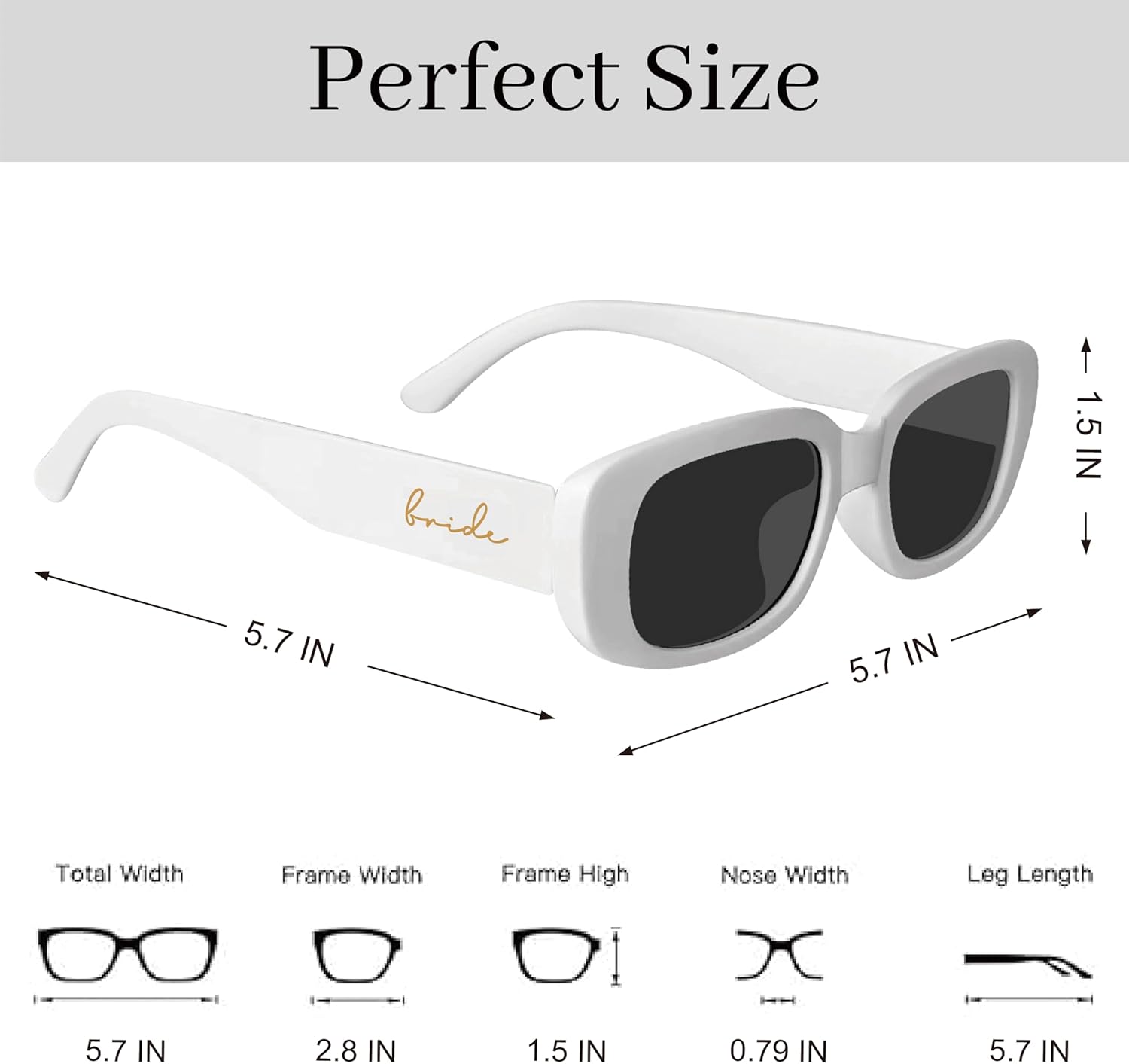 • 【Bridesmaid Sunglasses】 The rectangle frame makes the overall look of the bridesmaid sunglasses more retro. This stylish design allows you look more charming and make it easy for you to match with various outfits at various occasions