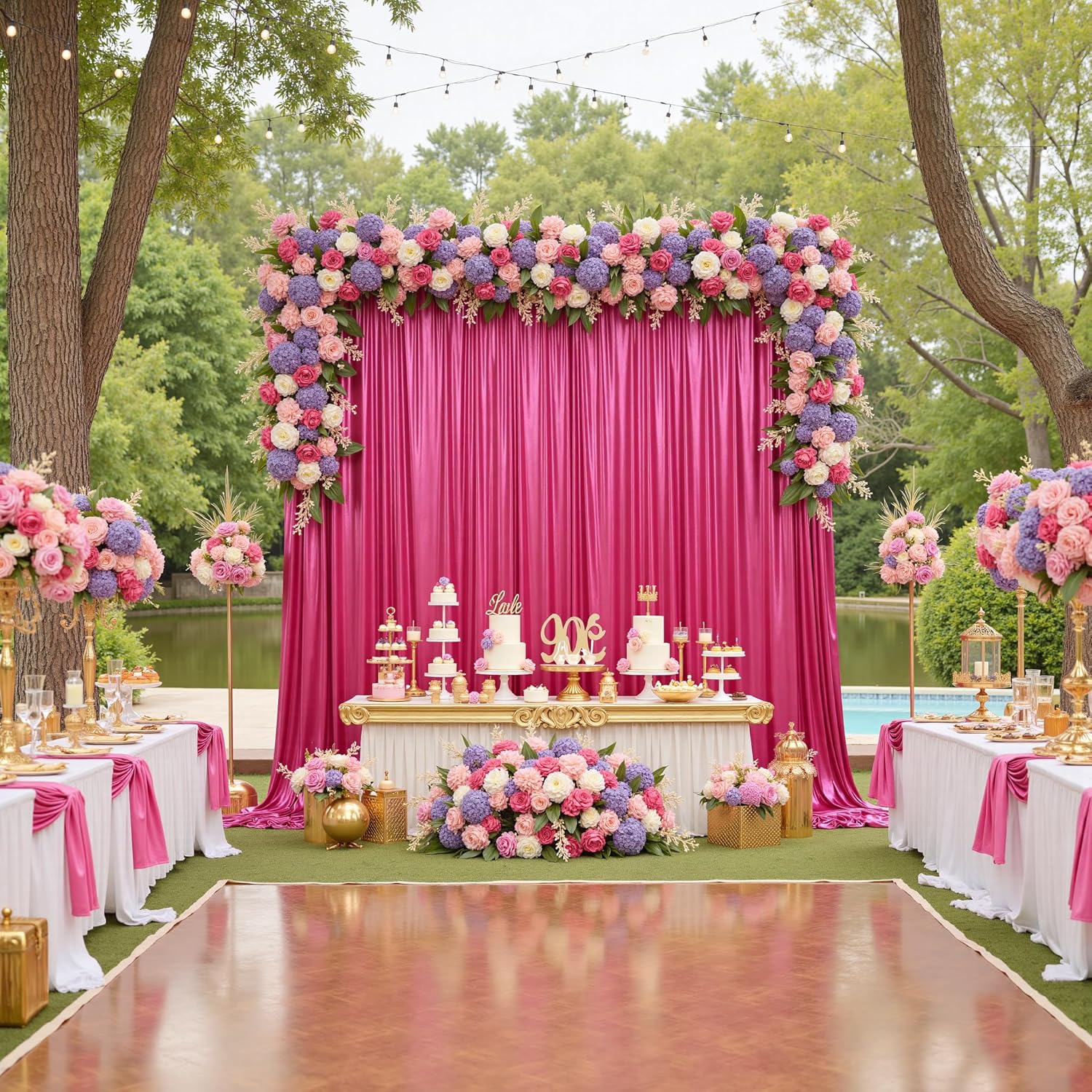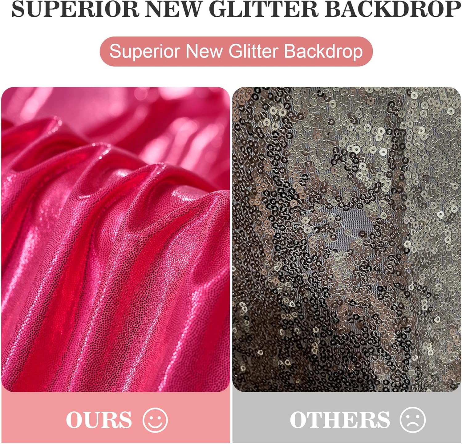 • New Glitter Hot Pink Backdrop Fabric: Made from high-quality soft polyester and glitter, thicker and more durable than standard sequin backdrops, adding charm and sparkle to your parties.