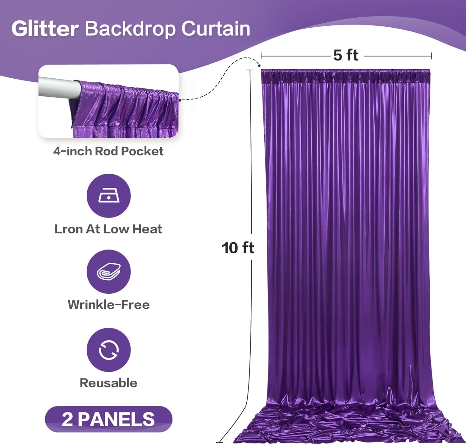 • Size & Coverage: This purple sequin backdrop includes 2 packs (each 5x10ft), which can be arranged side by side to create a 10x10ft backdrop or used separately for versatile decoration. Ideal for walls, photo booths, stages, and photography