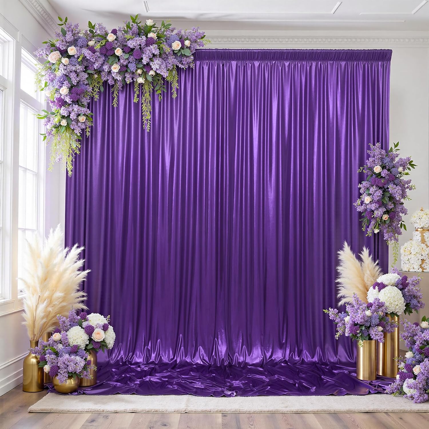 gogoparti 10x10FT Purple Sequin Backdrop Curtain - 2 Panels of 5x10FT Wrinkle-Free Glitter Drapes for Photography, Birthdays, Weddings & Graduations
