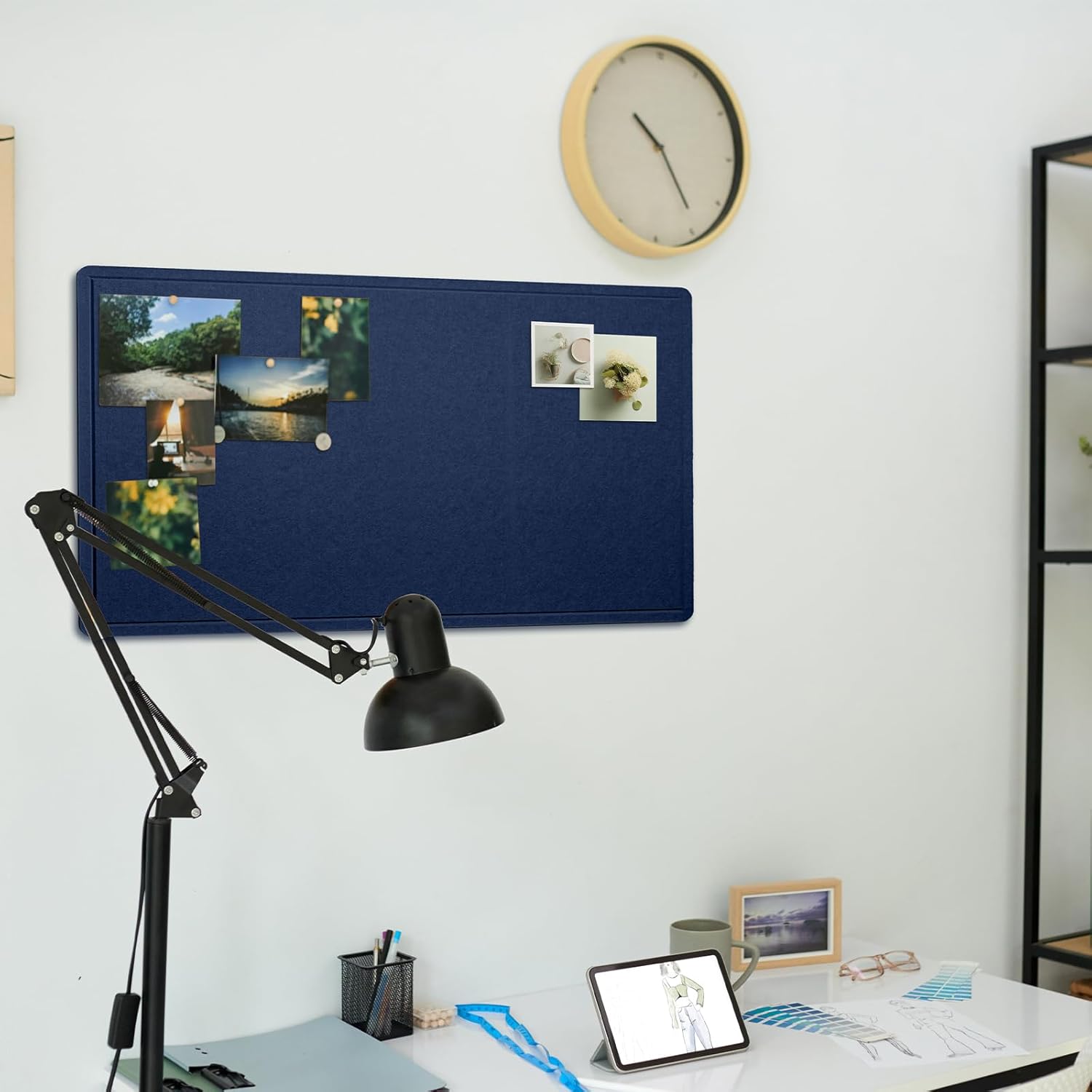 Bulletin Board, 35 x 17 1/2 inches Felt Board - Decorative Pin Board, Cork Board Alternative for Wall, Foldable Picture Board Self-Adhesive Vision Board Prayer Board with 20 Pushpins Dark Blue