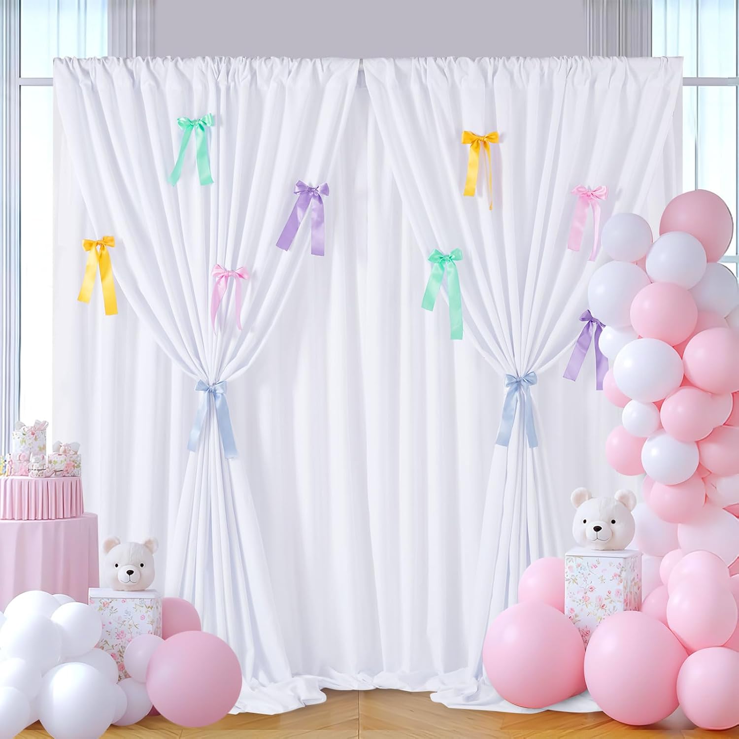 • 【Package Includes】: Included 2 panels 5.8x8ft polyester background, 20 double - sided satin bows and 2 pack of rubber bands, let you DIY your own unique decoration!