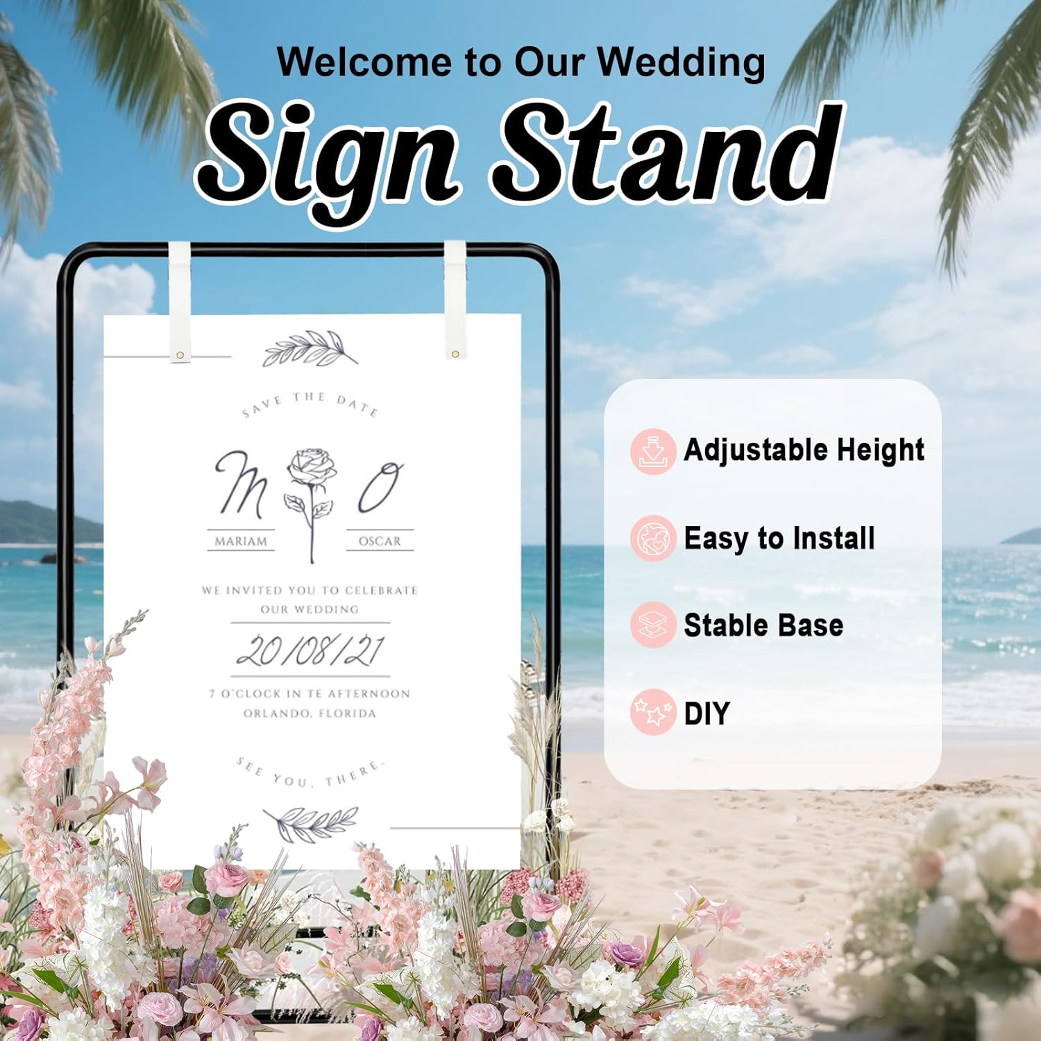 • PERSONALIZED WEDDING WELCOME SIGN HOLDER:Adjustable height. at 31" wide, this versatile easel stand for sign offers three height options: 38"or54" or 70", making it perfect for showcasing your welcome sign or a larger seating chart. celebrate Love Through thoughtful Details, let your guests feel your care from the very first moment they arrive. every second of your wedding deserves perfection, starting with this meaningful welcome sign that embodies joy.