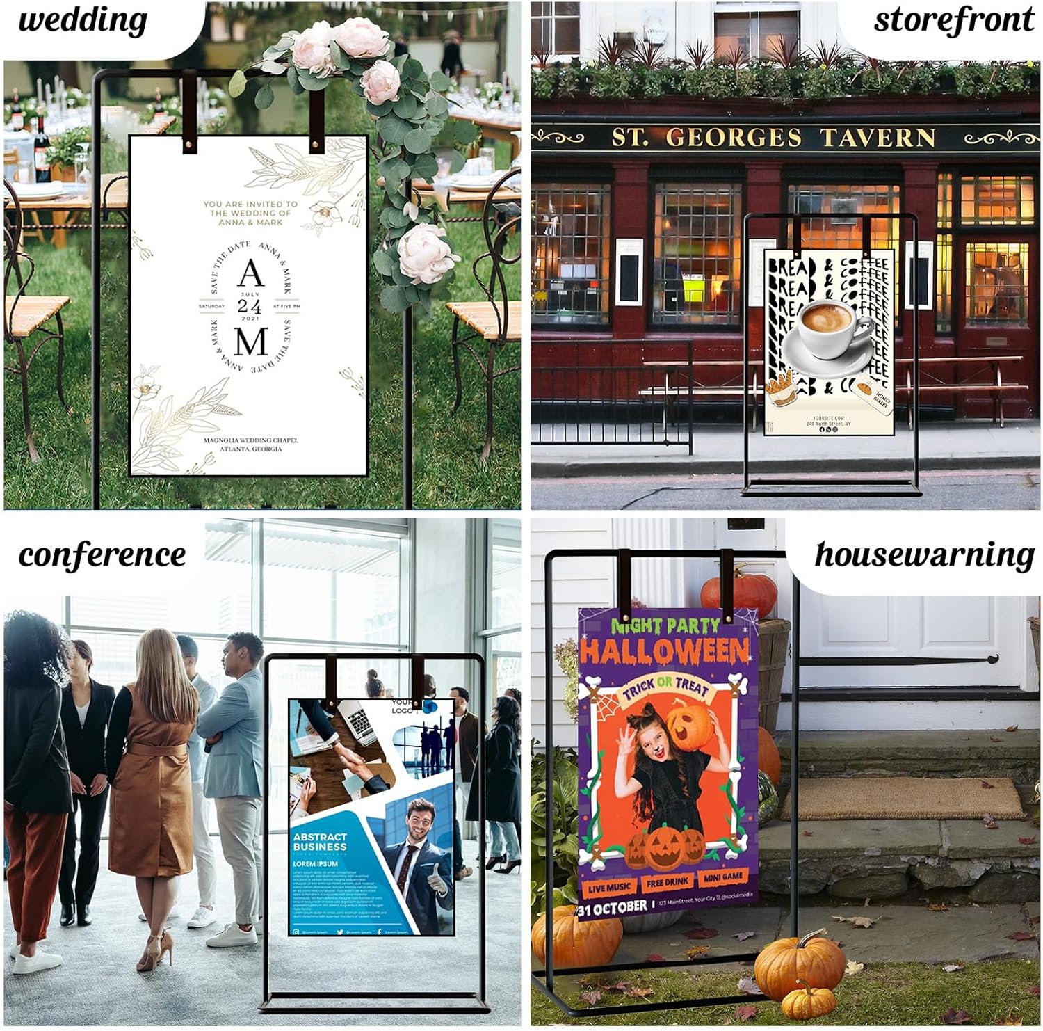 • METAL MATERIAL:Our poster stand is made of durable and high-quality thick metal. easy to assemble and durable. wedding welcome sign, seating chart display, or front door welcome sign. sturdy construction ensures long-lasting use both indoors and outdoors.
