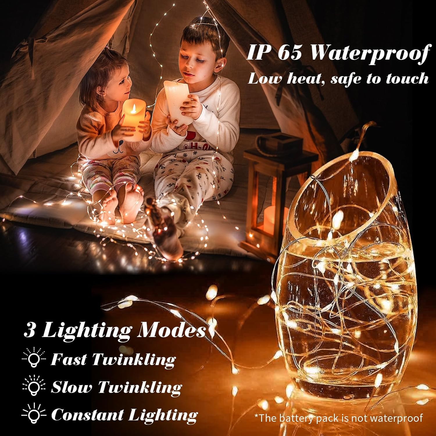 • 3 LIGHTING MODES AND WAIDELY APPLICATION: The fairy lights are super convenient enables to switch 3 flashing modes, Fast Twinkling, Slow Twinkling and Constant Lighting; This versatile battery operated lights can be used for Christmas decoration, holiday, Halloween parties, Valentine's Day, wedding, bedroom and centerpiece table decorations. Giving you different decorative effect and romantic atmosphere