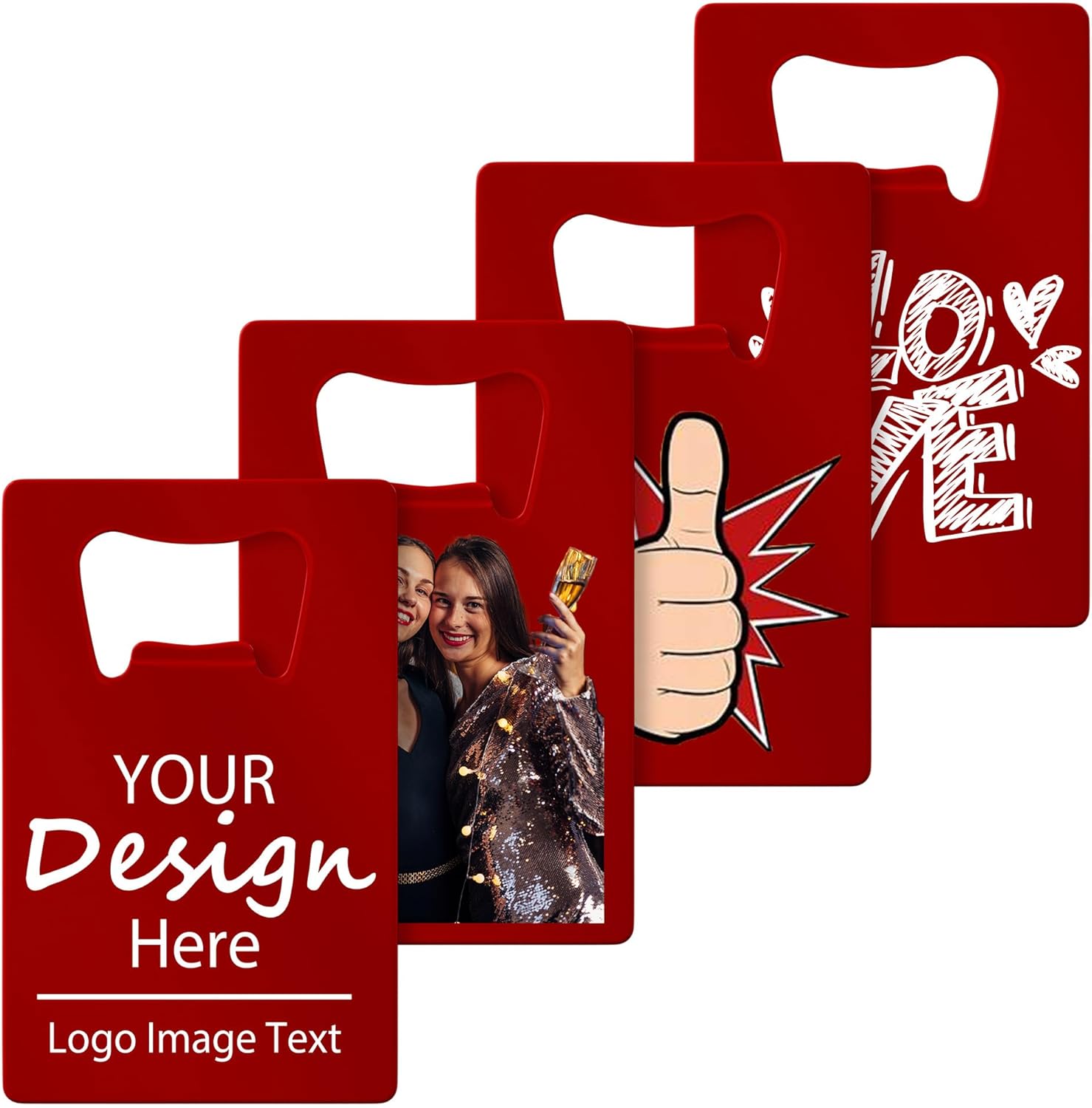 Personalized Credit Card Bottle Opener, Custom Stainless Steel Beer Bottle Opener, Upload Your Name/LOGO/Text, for Wedding Favors, Brewery, Bar, Anniversaries, Party (Red)