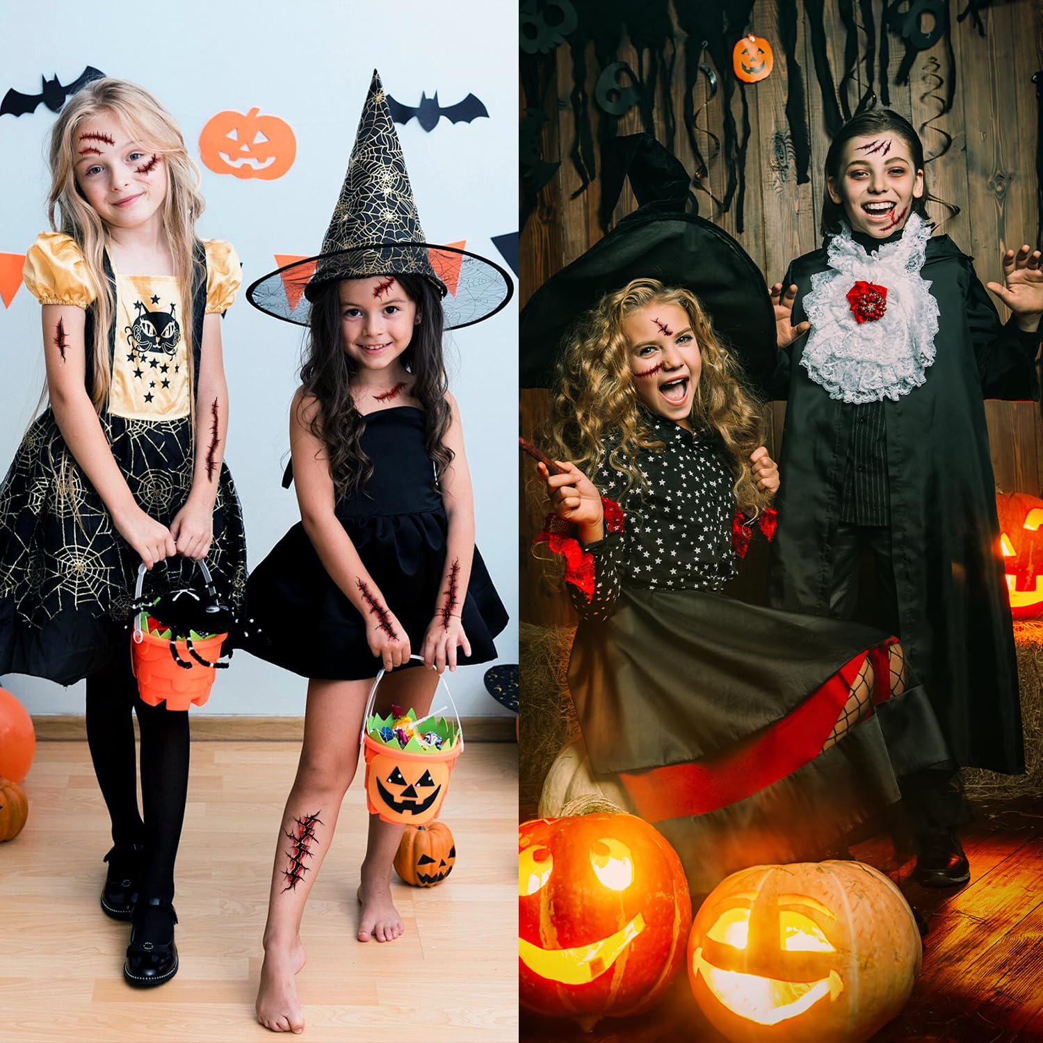 • Realistic Zombie Makeup: Halloween tattoos for kids adults look realistic, especially if you add simple makeup around them. You will get 12 sheets of horror realistic Halloween tattoos stickers, scar makeup for Halloween parties, cosplay parties, playing dress up, etc